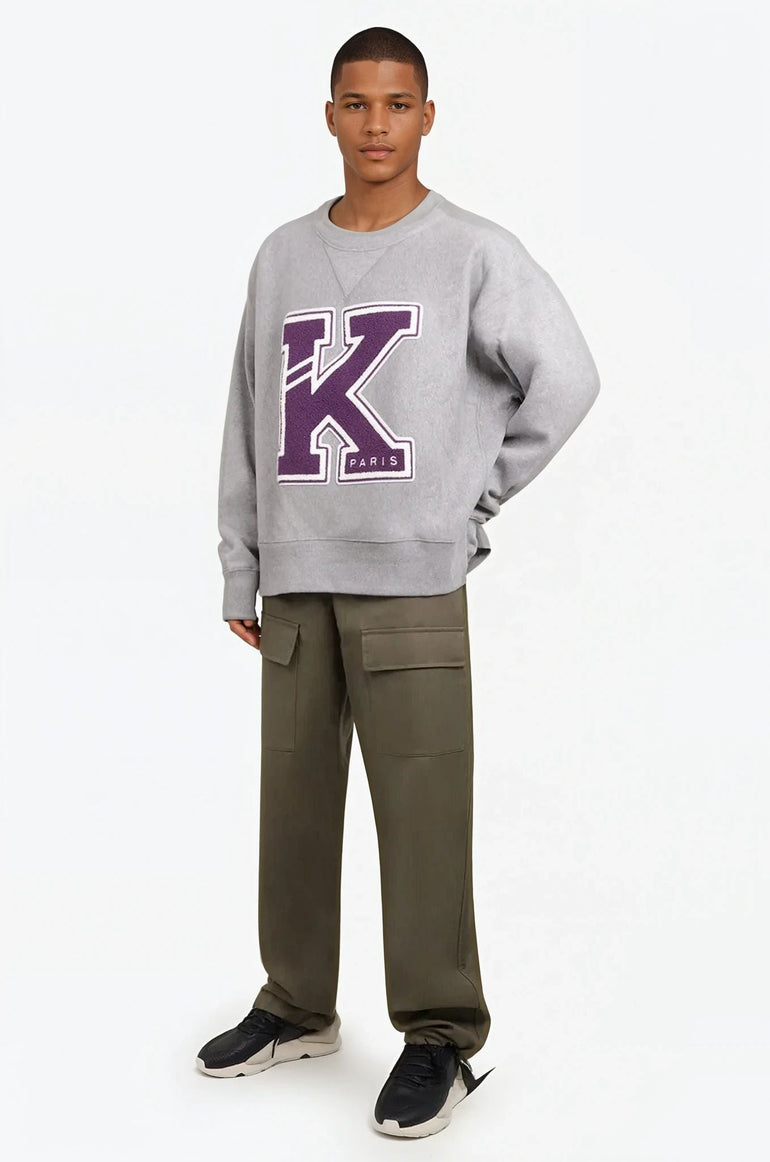 Kenzo's College Sweatshirt in pearl grey has a crew neck neckline, long sleeves and the Kenzo 'K' at the front.