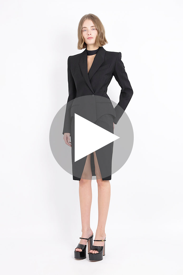 MUGLER RTW CROPPED HEAVY FLUID BLAZER | BLACK