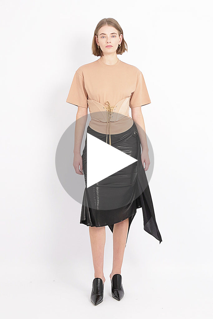 SHORT SLEEVE CORSET WAIST DETAIL T-SHIRT | TAN