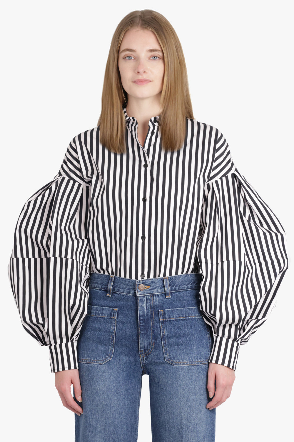 Stripe L/S Shirt With Balloon Sleeves | Black/White