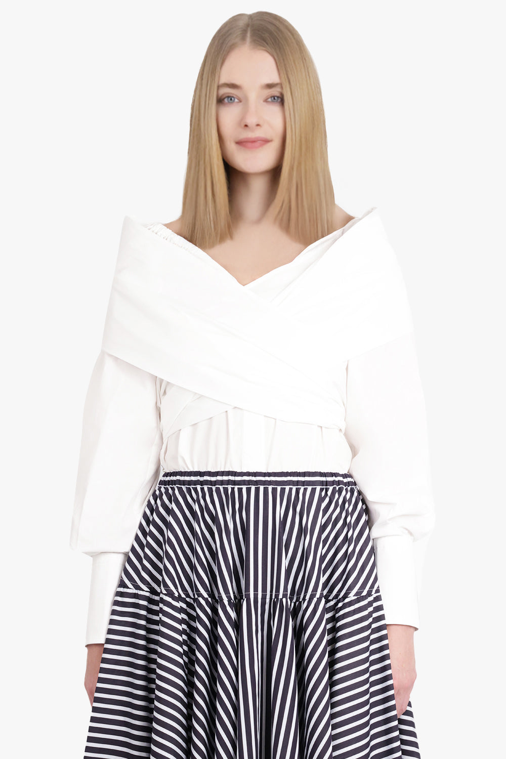 PATOU Draped Wide Collar L/S Blouse With Adjustable Tie