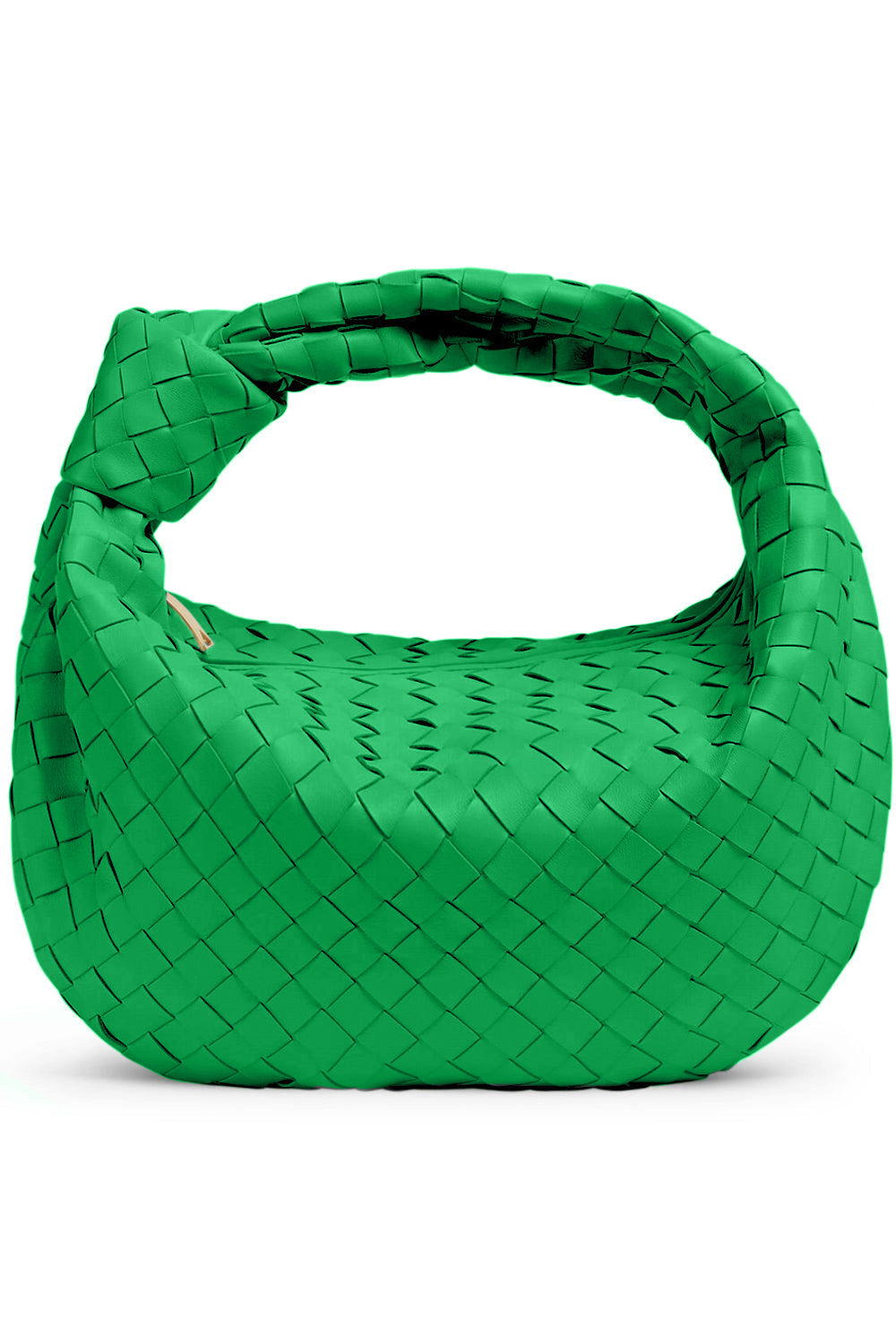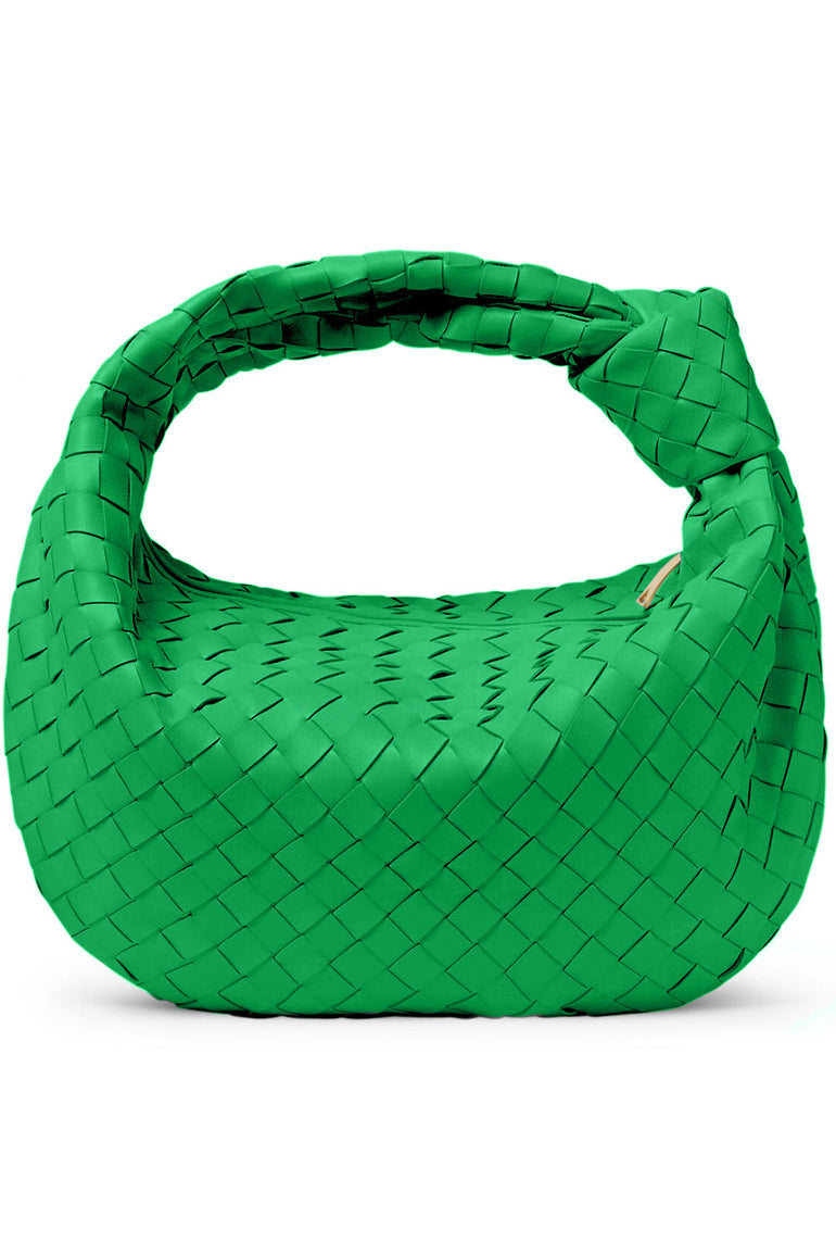 The Bottega Veneta Teen Jodie Bag in Parakeet is crafted in a supple Intrecciato-woven leather with a knotted strap and a gold-tone metal zip that opens to the smooth leather interior and single interior zipped pocket.