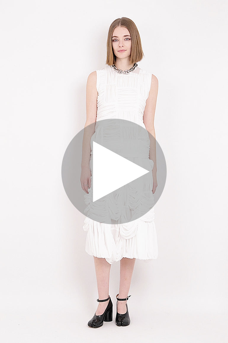 Made of lightweight georgette fabric, this skirt features elegant draped ruch panels and an adjustable drawstring waist. With a midi length and a straight hem, it creates a voluminous and flattering shape.