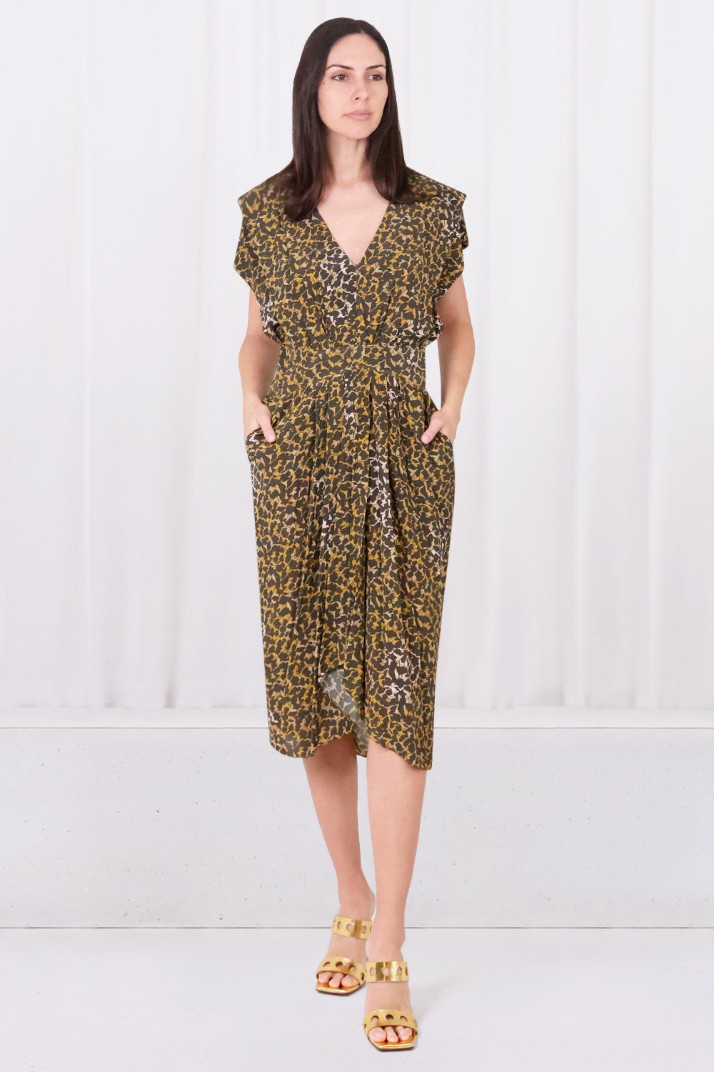 X Ester Manas Asymmetric Draped Mini Dress | Khaki