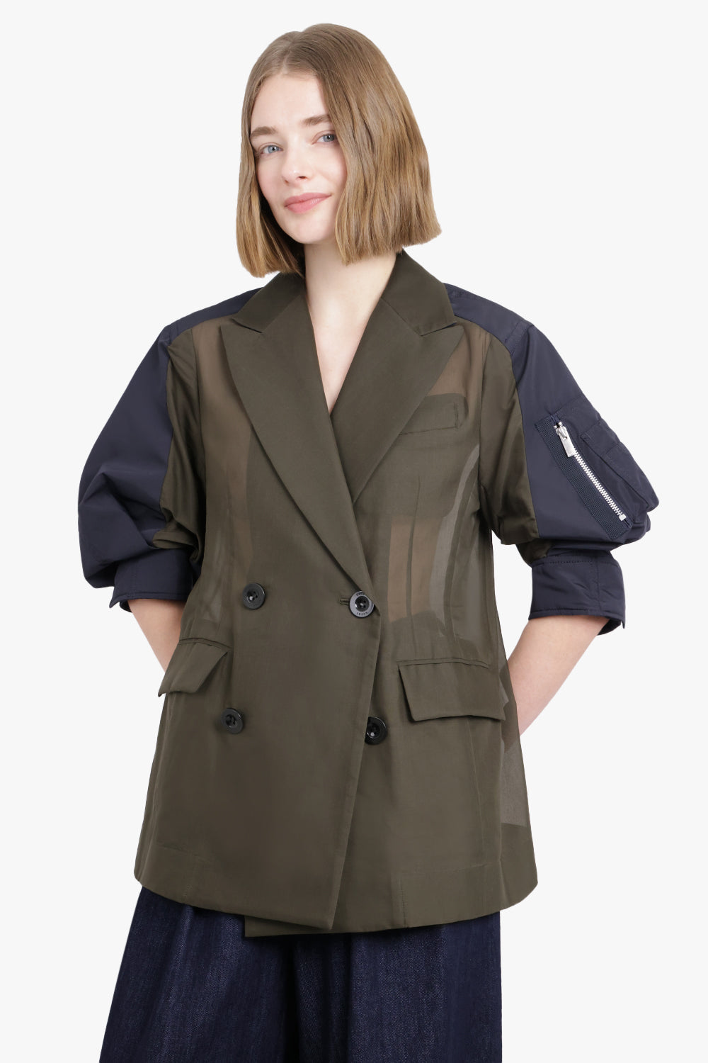 Voile X Taffeta Jacket | Khaki Navy