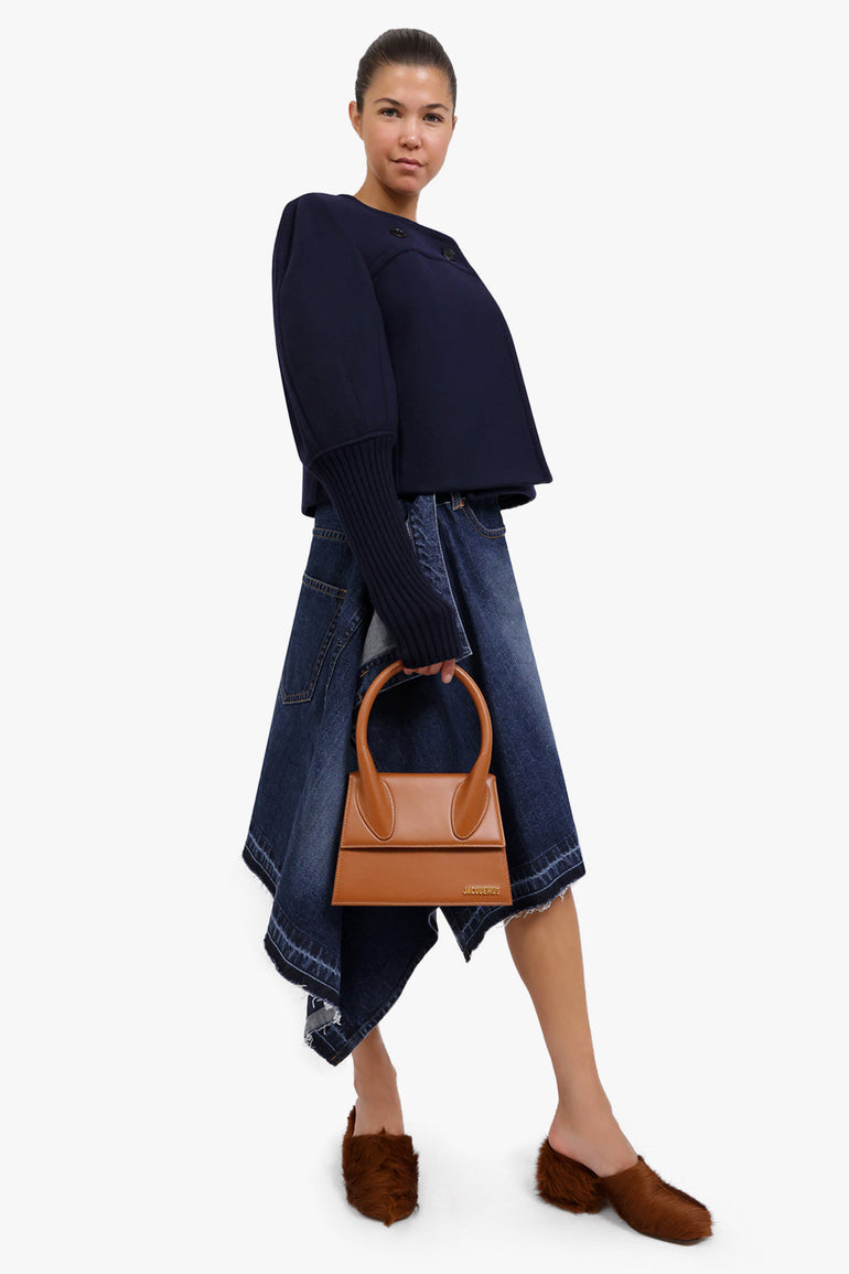 吉驰·勒·罗克托袋在深褐色具有圆形顶部手柄,可拆卸的肩带,顶部的折叠,具有磁性封盖和主要内部隔室和金色标志斑块。