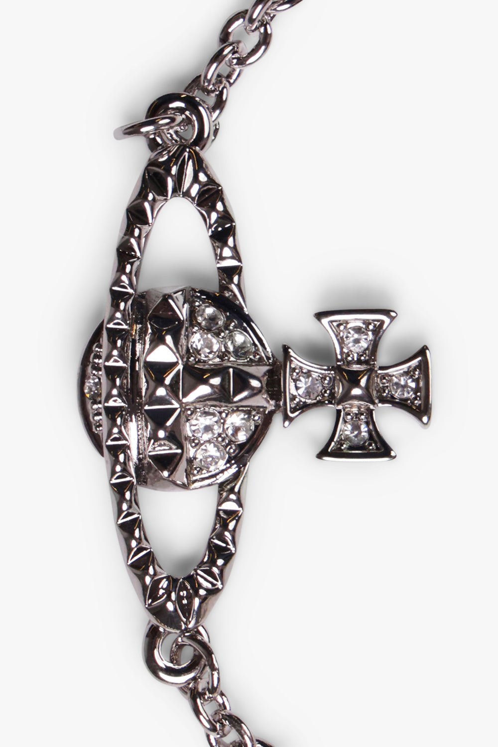 The recent collection continues the long tradition of merging various materials including gemstones and precious metals. The new intricate designs are bold and edgy, using her characteristic themes and elements including the most famous of them all, the Orb. The Orb symbol, Vivienne Westwood's most iconic motif, frequently appears in her jewellery designs. This is evident in this season’s new arrivals including the gold and silver necklaces, pendants, chokers, bracelets and earrings.