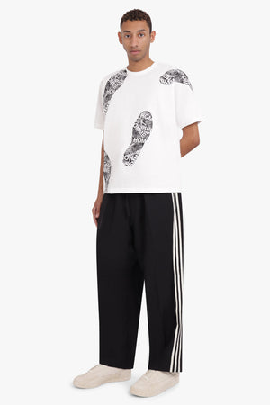 Y-3's Adidas Halo Runner in off white/black has a lace-up front and woven threads to resemble the adidas stripe logo.