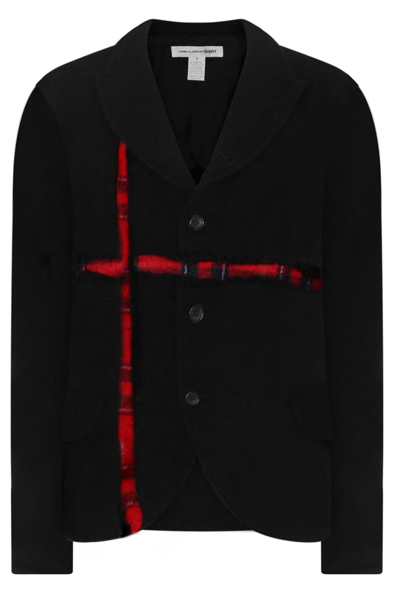BLAZER WITH TARTAN DETAILING | BLACK/RED