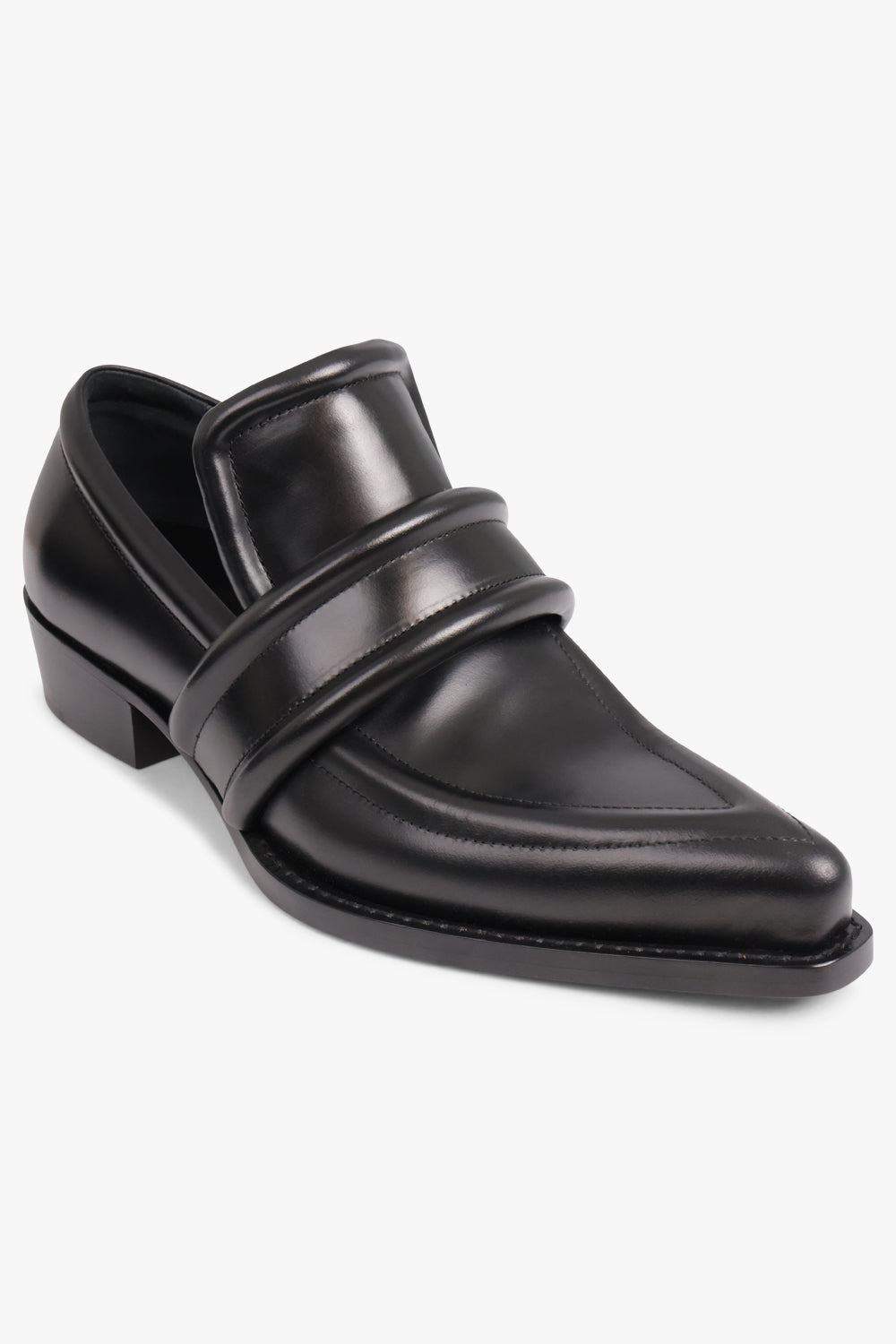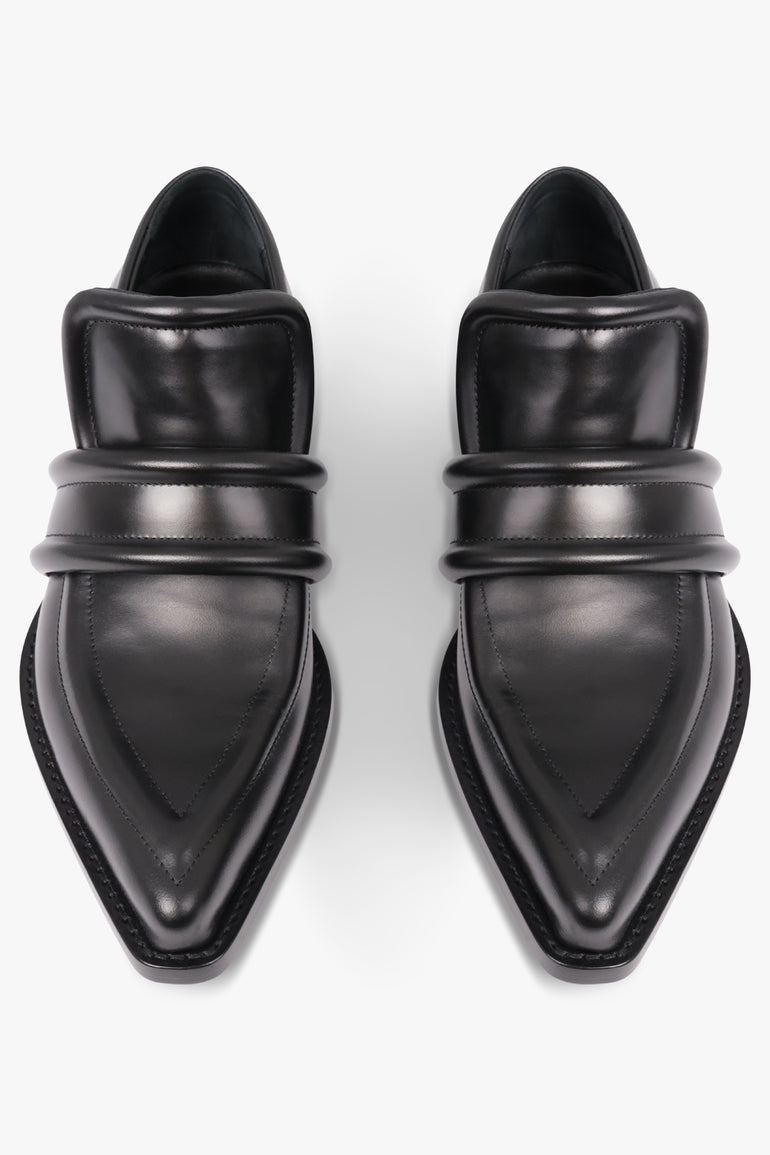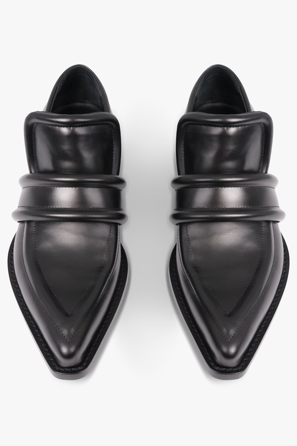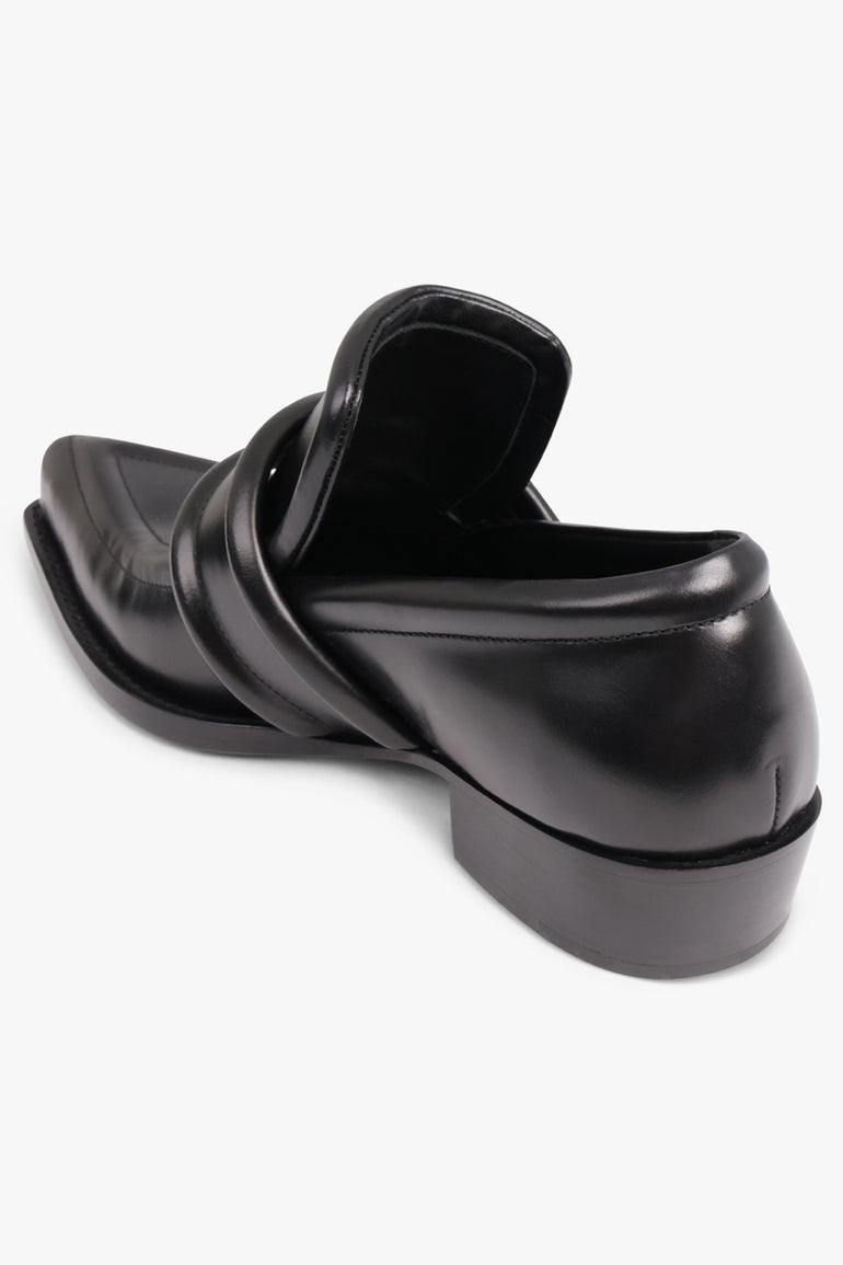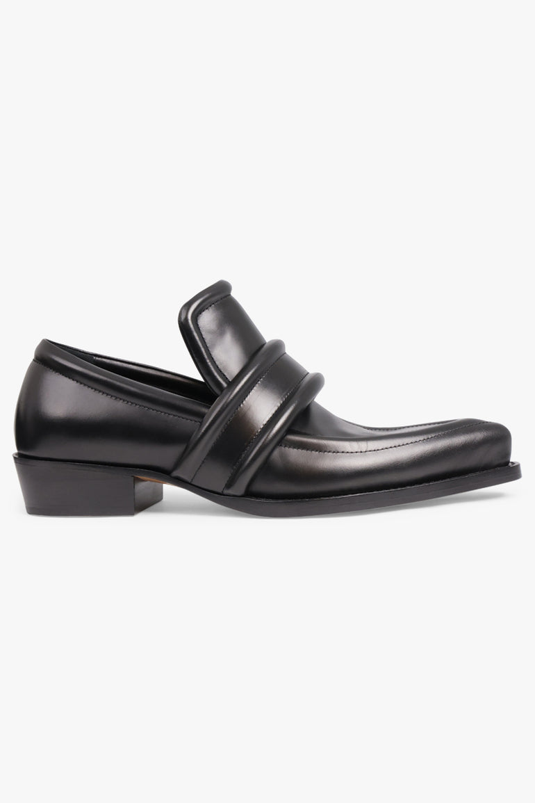 Bottega Veneta’s leather-making expertise is on show with these black loafers, which are sculpted to a point-toe shape with a ribbed strap and stacked heel.