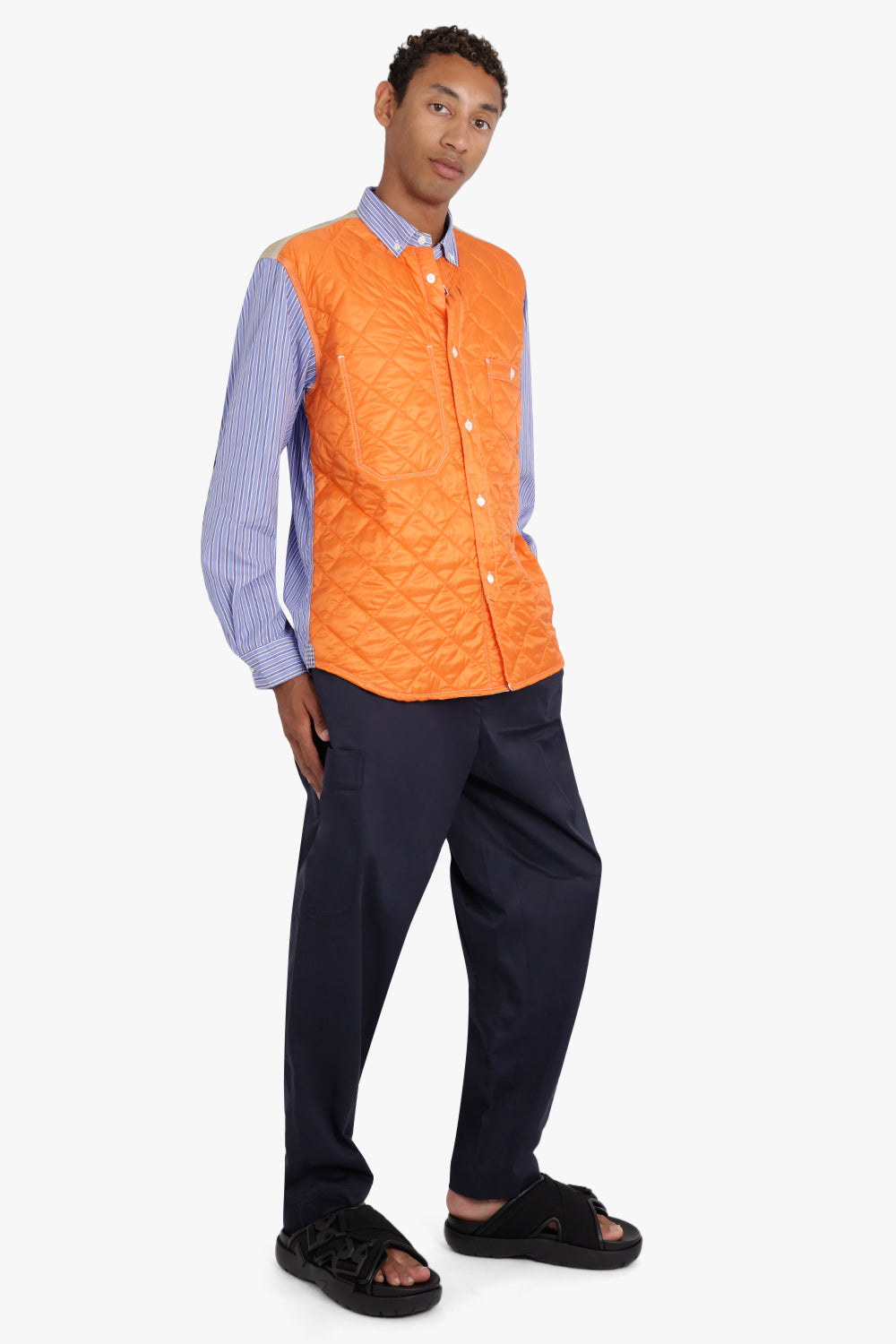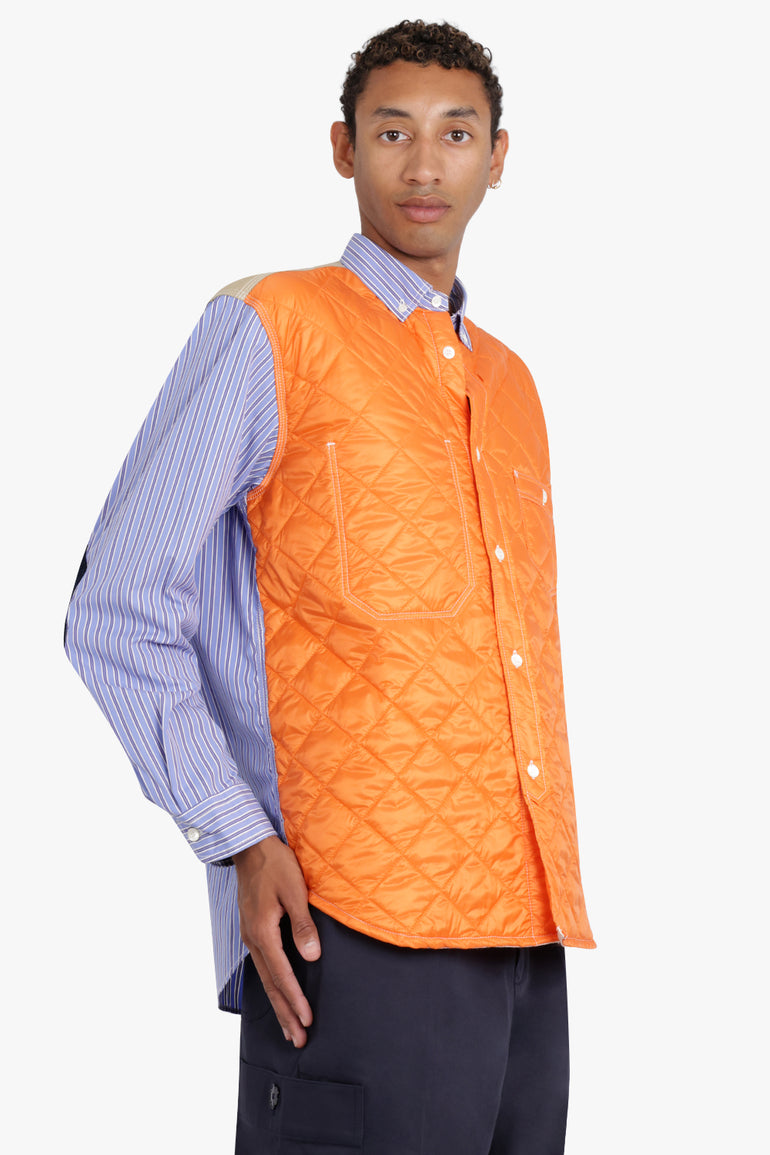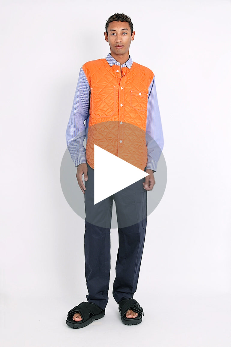 Stripes are never out of style, especially when they're from Junya Watanabe MAN. Formed in 1992 under the umbrella of Comme des Garçons, this fashion line has always been a trendsetter. This over shirt, with its playful white, blue, and orange broad stripes, is no exception. Crafted from quilted fabric, it's as comfortable as it is stylish.