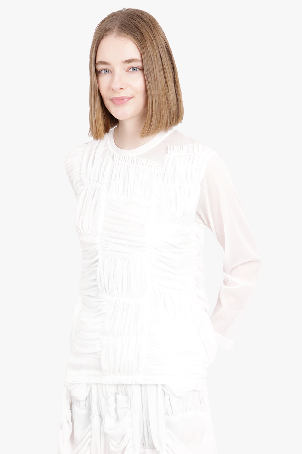 Drape Ruched Panel L/S Top | White