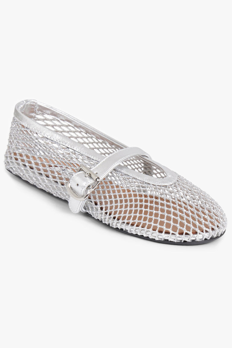 ALAIA SHOES Fishnet Mesh Ballet Flat | Silver
