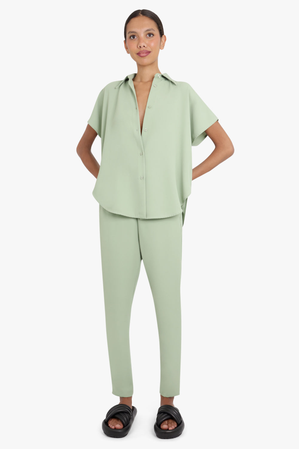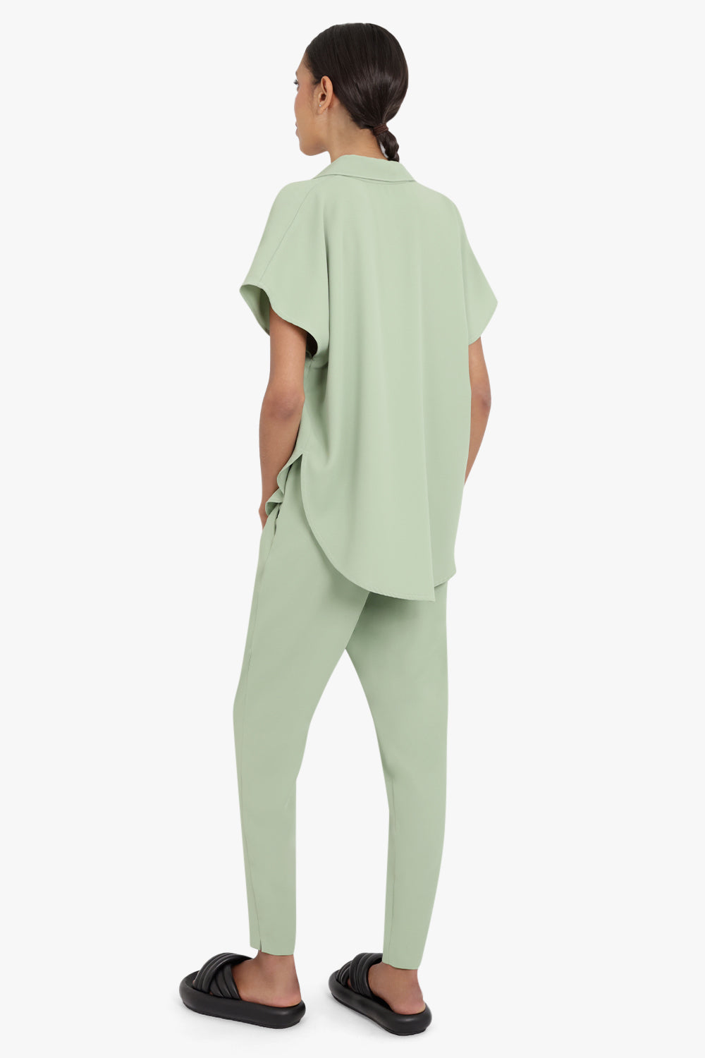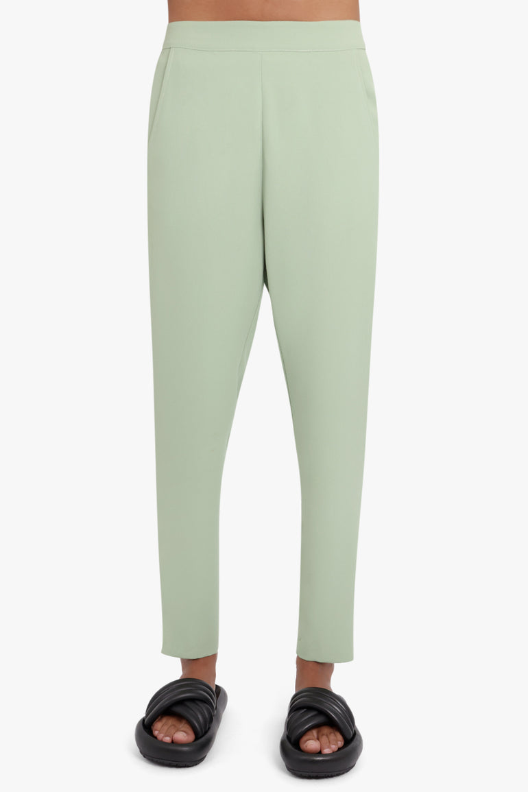 Maison Poi液体松弛苗条腿裤子经过精湛的腿形状。它具有前袋和弹性腰带。