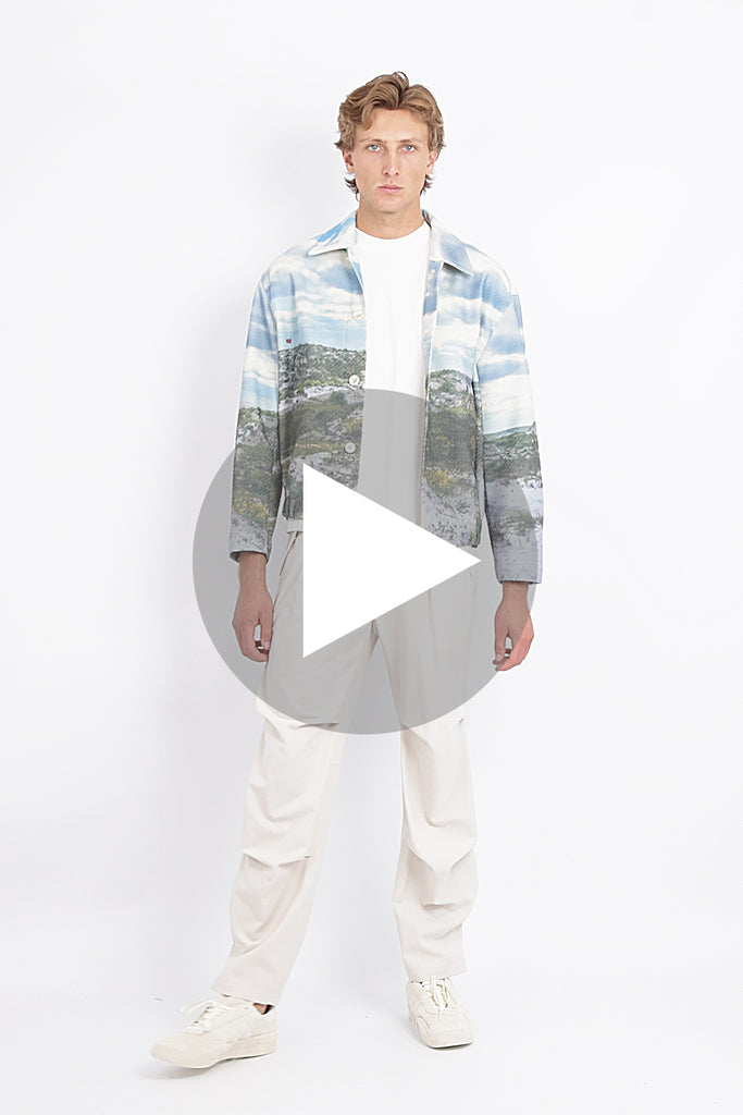 The full printed jacket boasts a stunning ocean print, complete with an adjustable hem and lined sleeves and shoulders.