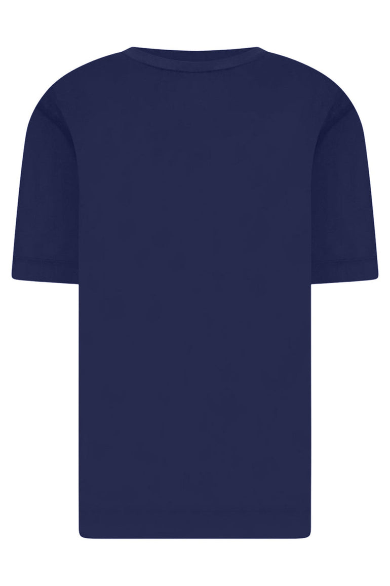 The Dries Van Noten Habba T-Shirt in Dark Blue is crafted from cotton, featuring a round neck and classic fit.