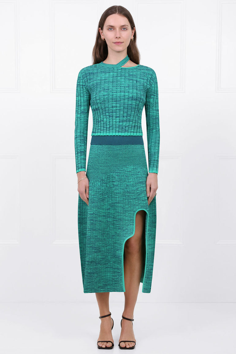 HIRAM PLEATED KNIT SKIRT HEATHER GREEN