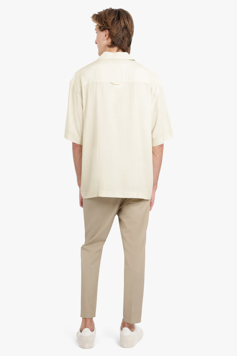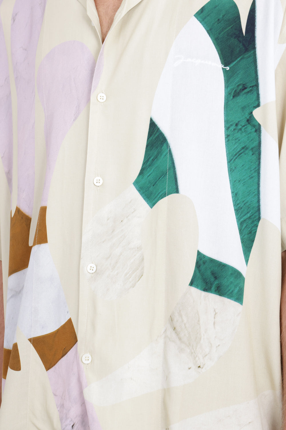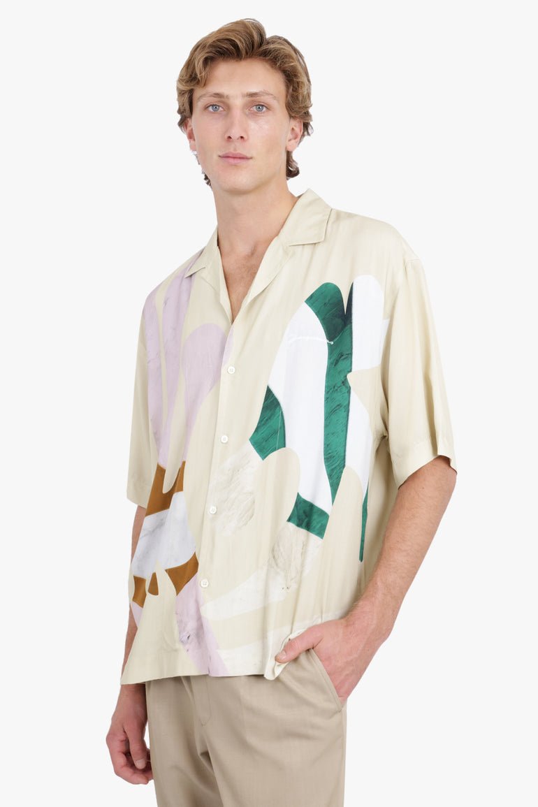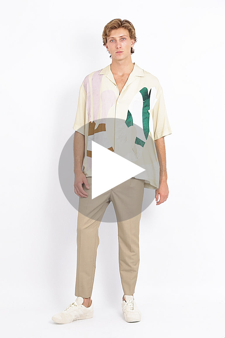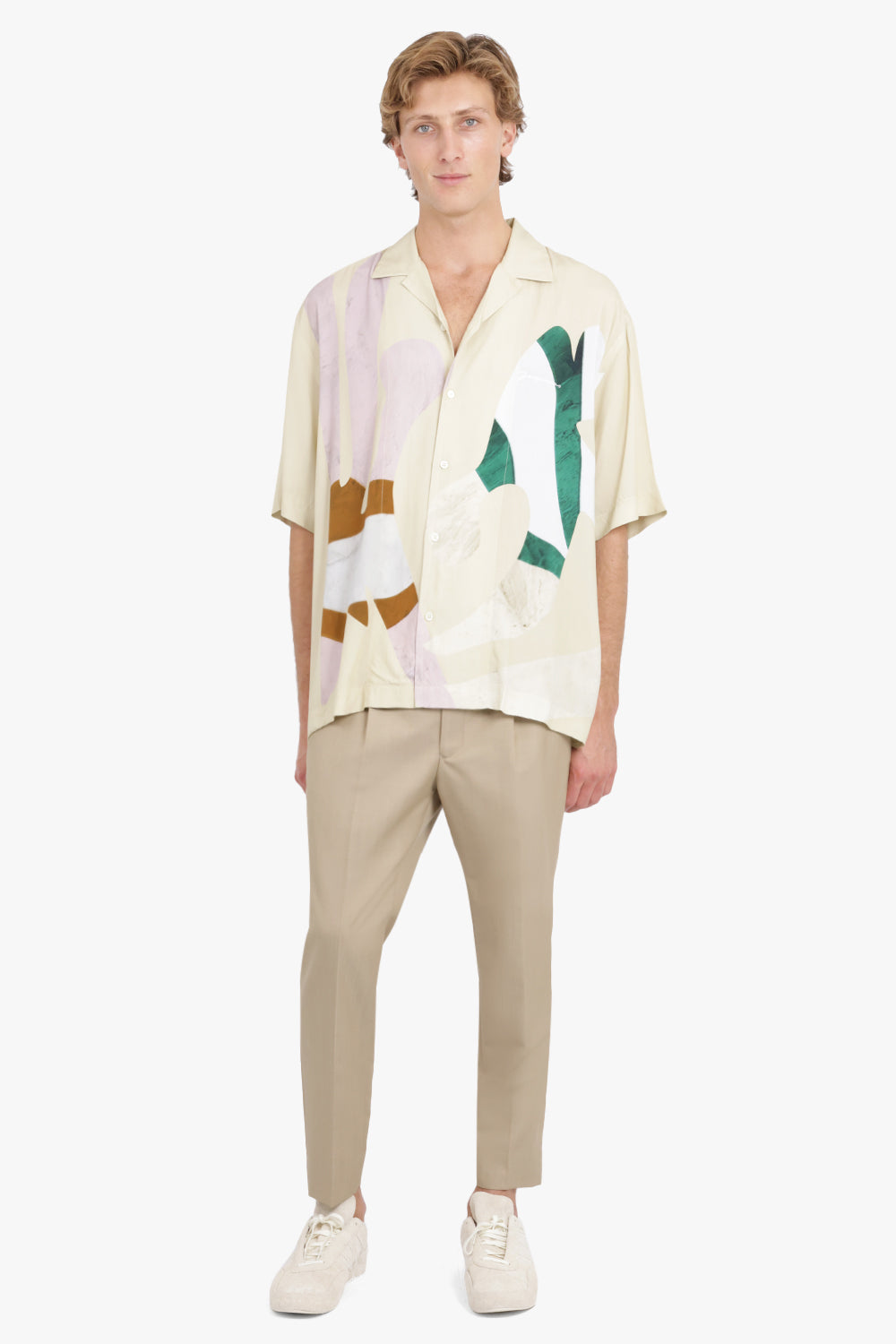 Crafted from jacquard Viscose fabric, it features a straight fit, pointed collar, button placket, and short sleeves with mother-of-pearl buttons. The statement vibrant jacquard patterns elevates any look.