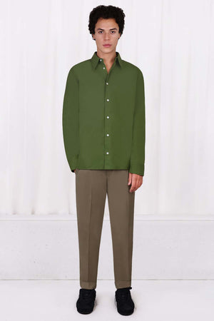 The Bottega Veneta Lace Up Shirt in Thyme is a compact cotton canvas shirt with cotton lace-up detail down the sides. This shirt is a relaxed fit with button down front and crisp collar.