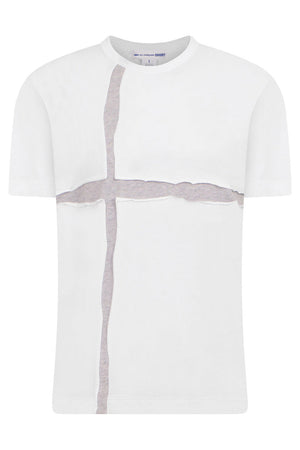 T-SHIRT WITH UNDERLAY GREY CROSS | WHITE