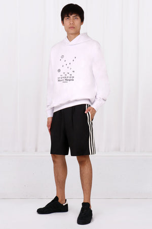 Y-3's Marathon Trainer in off white features a lace-up sneaker with subtle patterning of the adidas three stripe logo with some free-form threads.