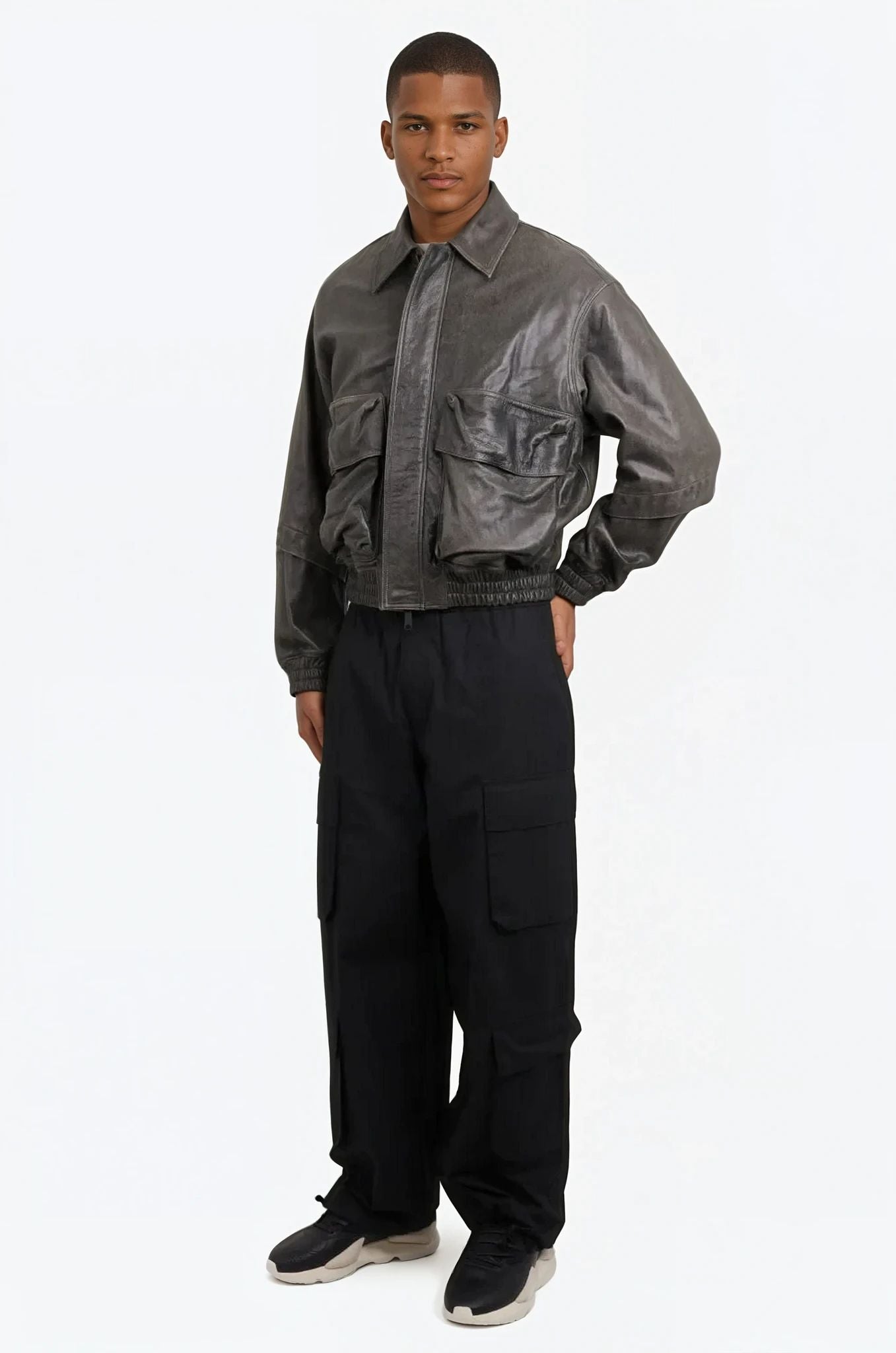 AFTER PRAY RTW OVERSIZED LEATHER BLOUSON | BLACK