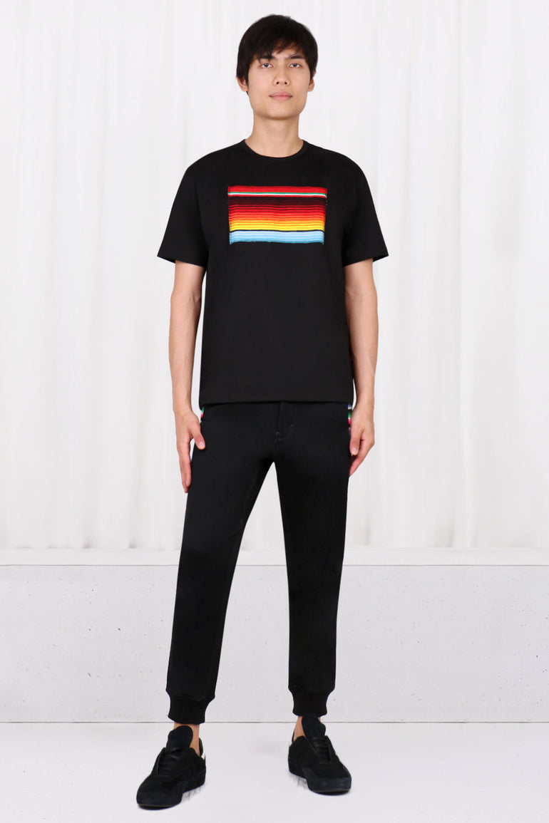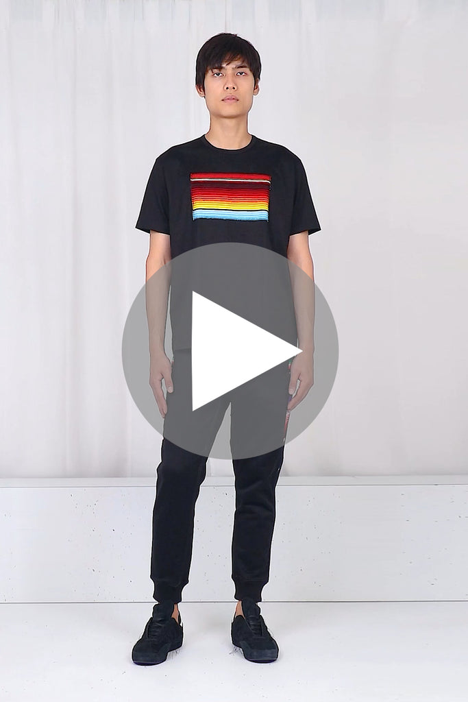 The Junya Watanabe Printed T-Shirt is crafted from cotton, and is a straight, standard fit. This style features a coloured, serape graphic across the chest, short sleeves and a crew neckline.