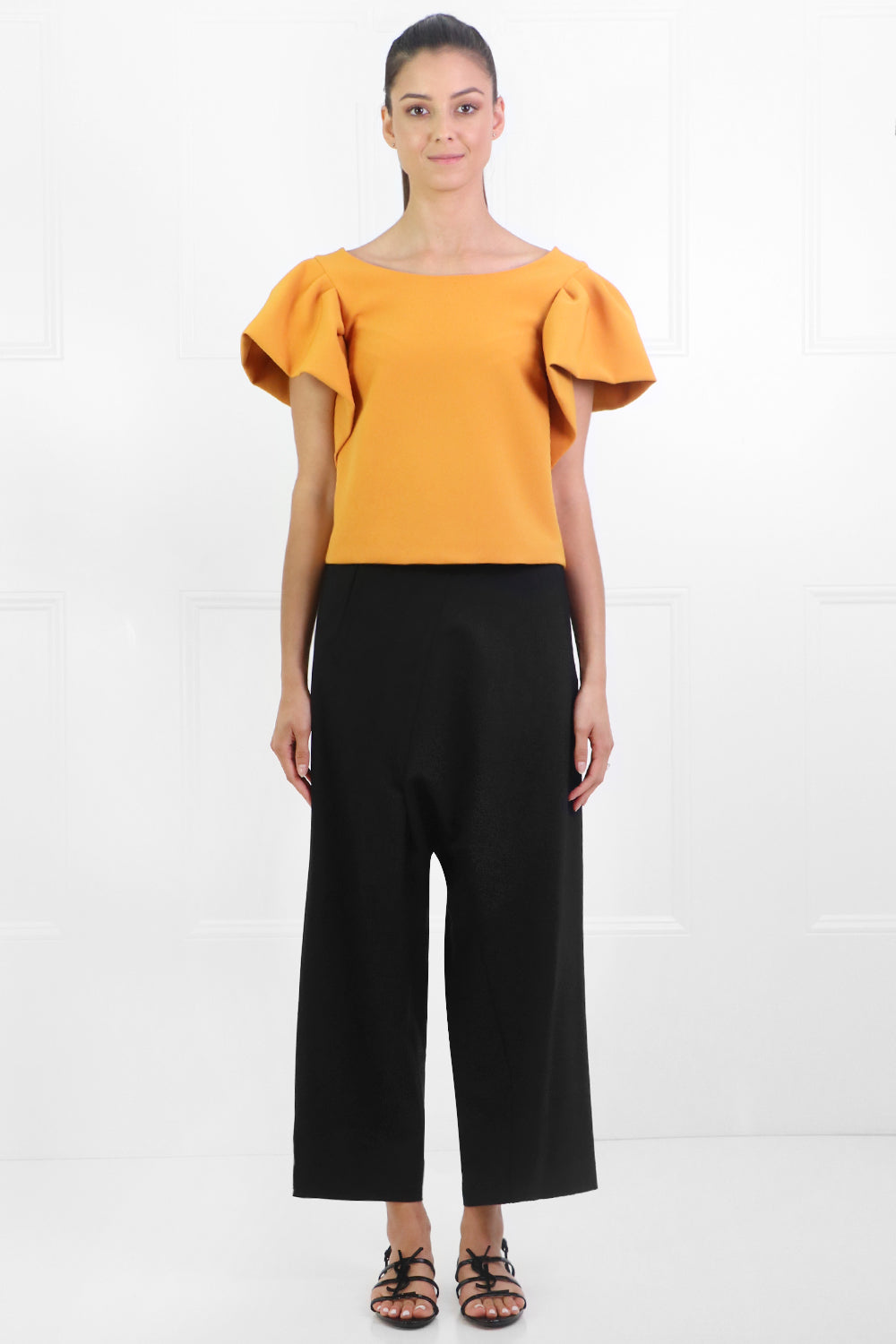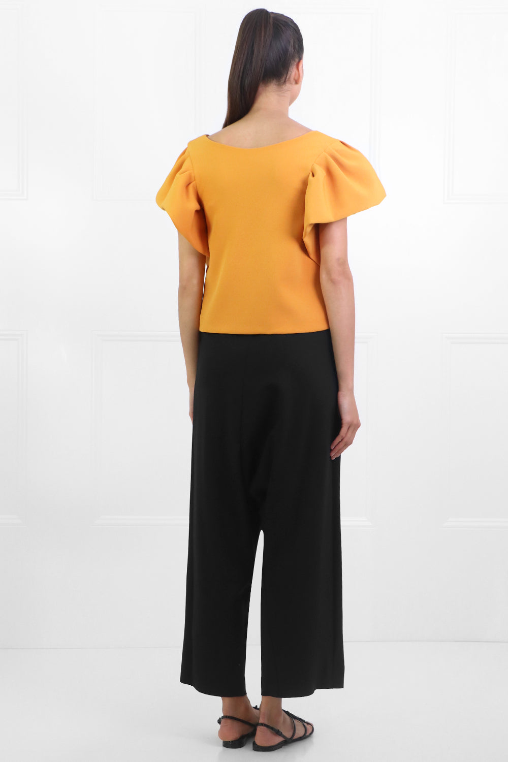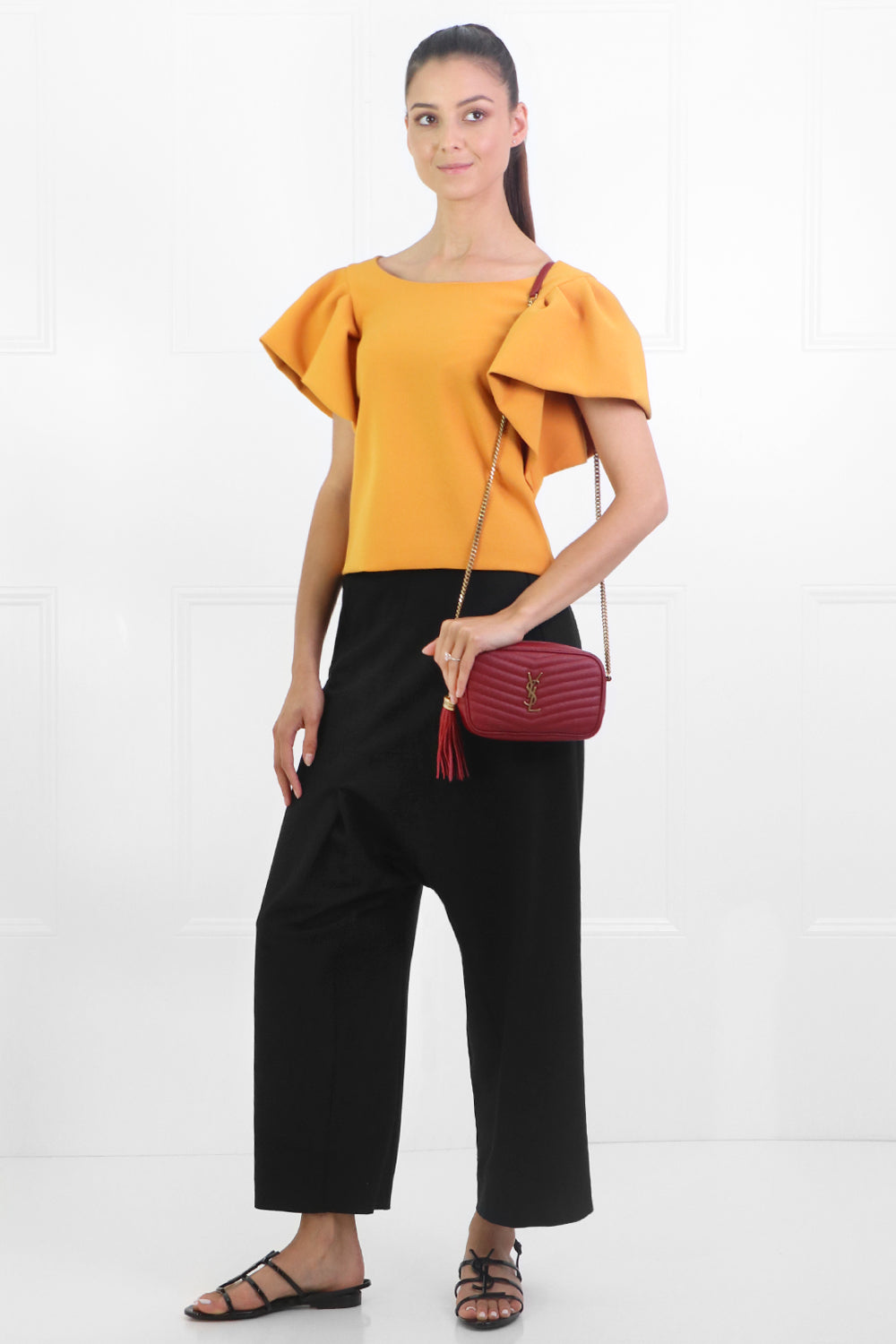 Maison Poi组织作物顶部设有优雅的钟罩和船只颈部。它被切割成一个松散的,剪影,直线下摆。