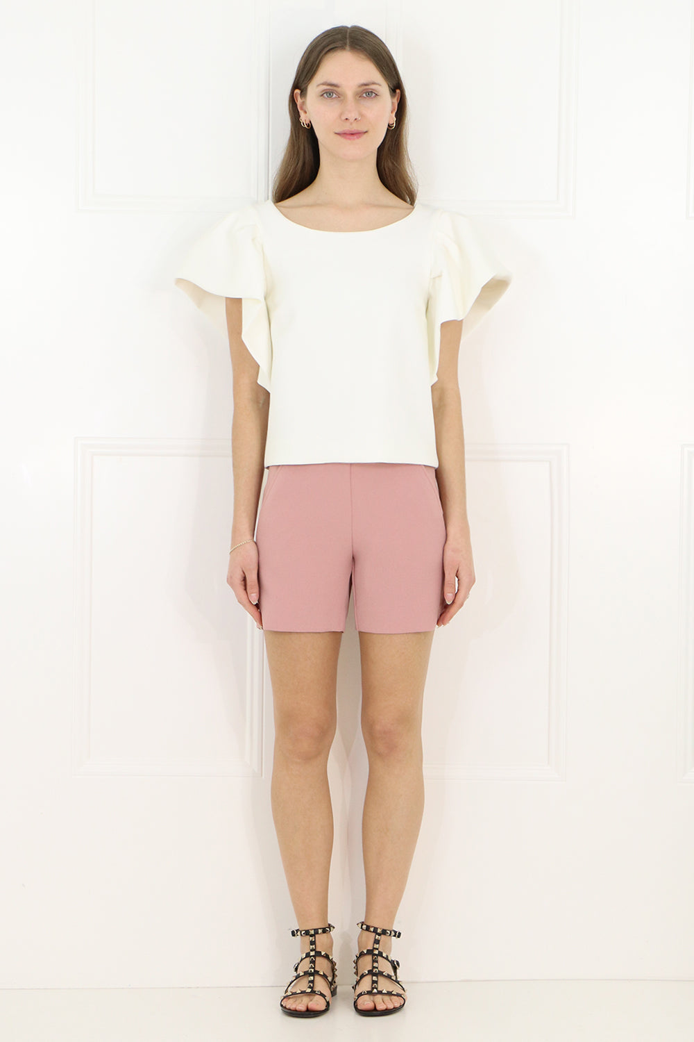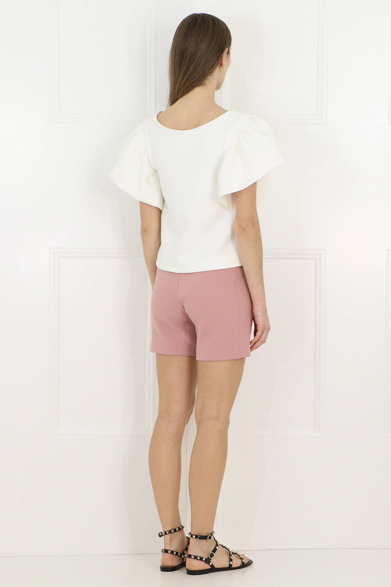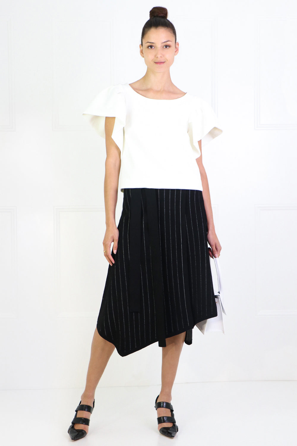Maison Poi组织作物顶部设有优雅的钟罩和船只颈部。它被切割成一个松散的,剪影,直线下摆。