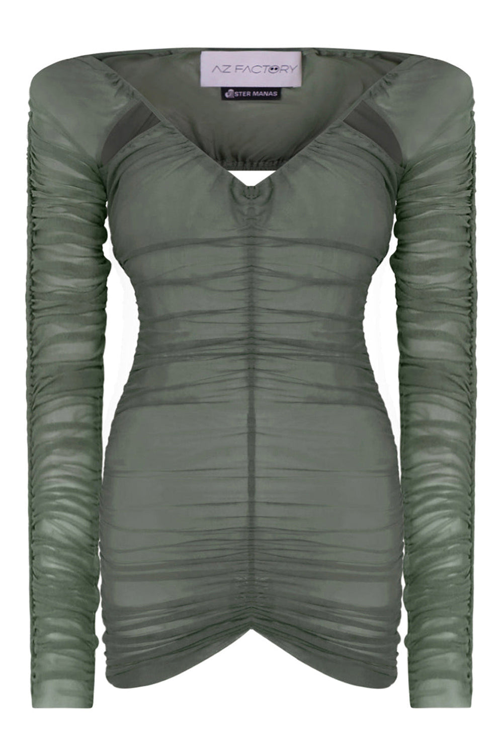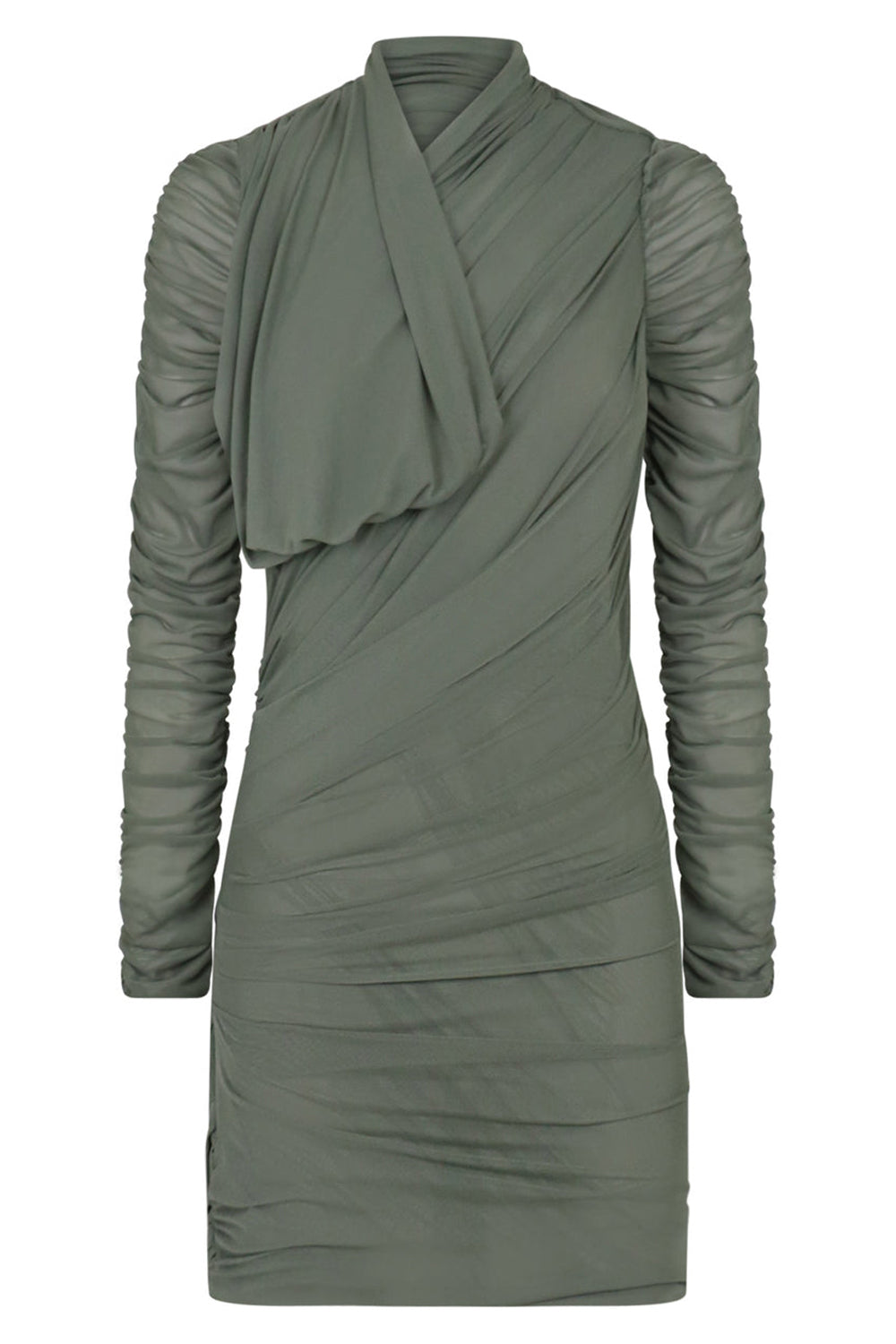 X Ester Manas Asymmetric Draped Mini Dress | Khaki
