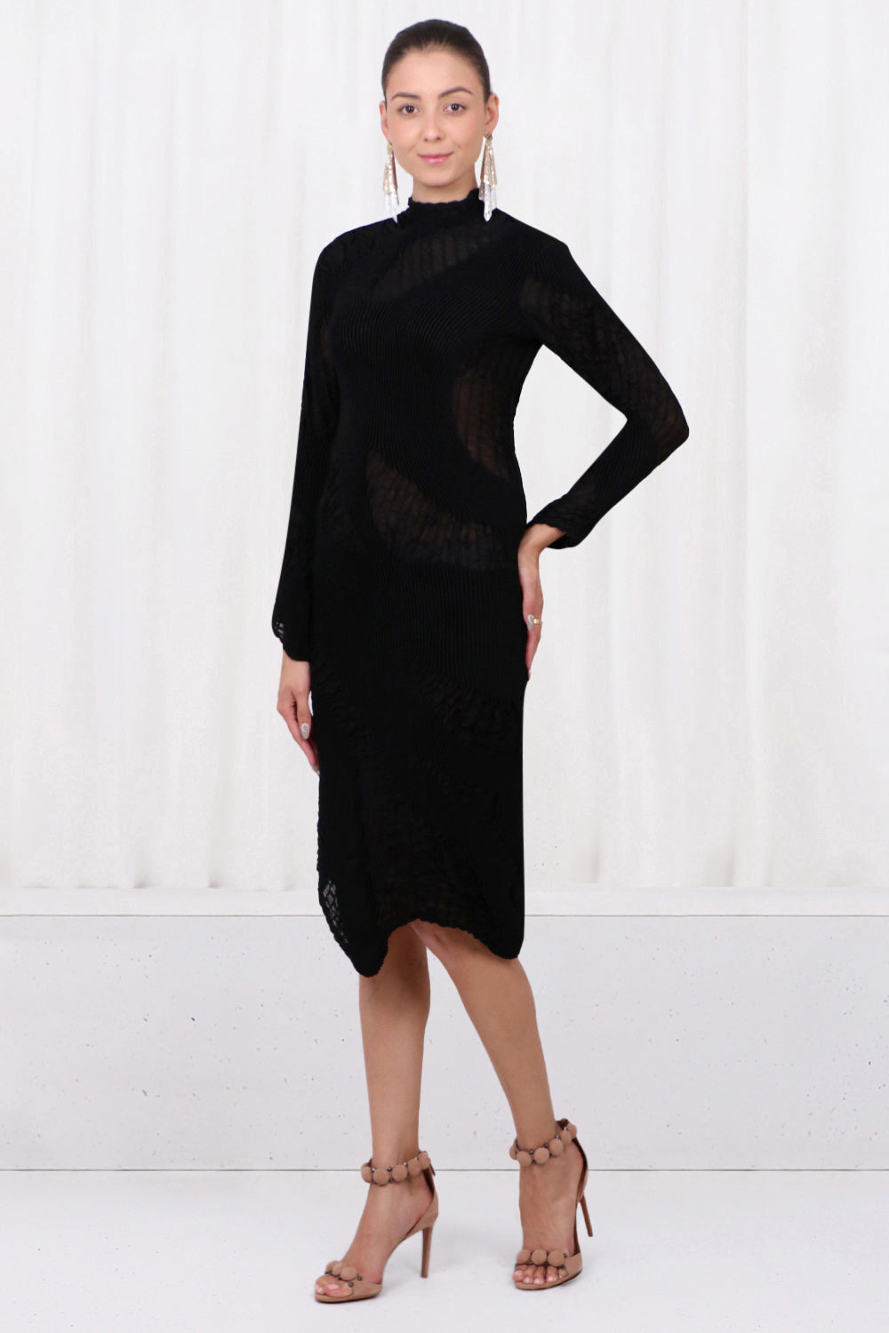 Zigzag Ripple Sleeve Midi Dress | Cold Grey