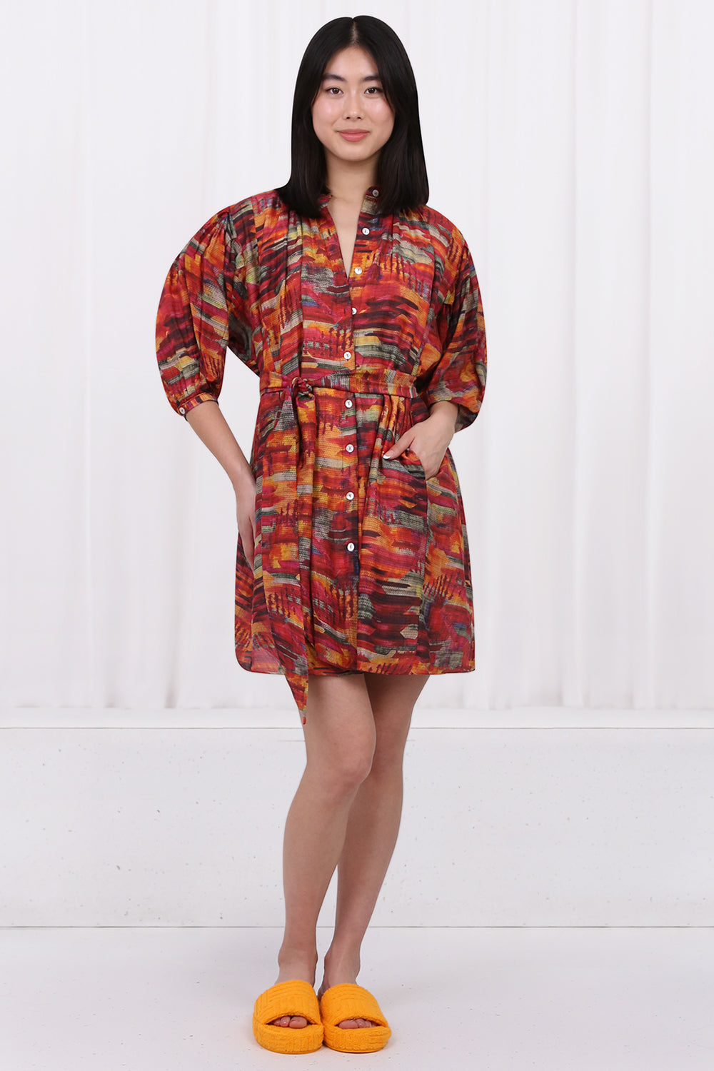 Zigzag Ripple Sleeve Midi Dress | Gold