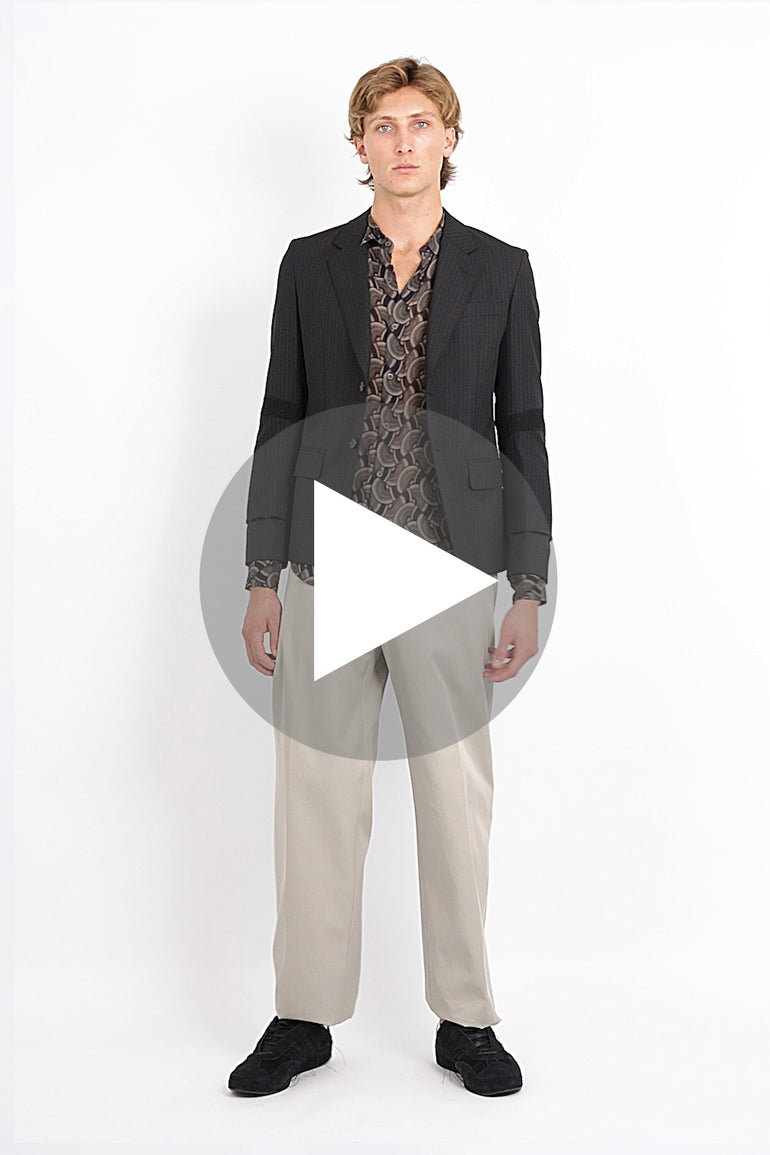 This shirt features a sheer viscose crepe material and a graphic pattern throughout for a fashionable look. The open spread collar, button closure, and vented side seams add functional details.