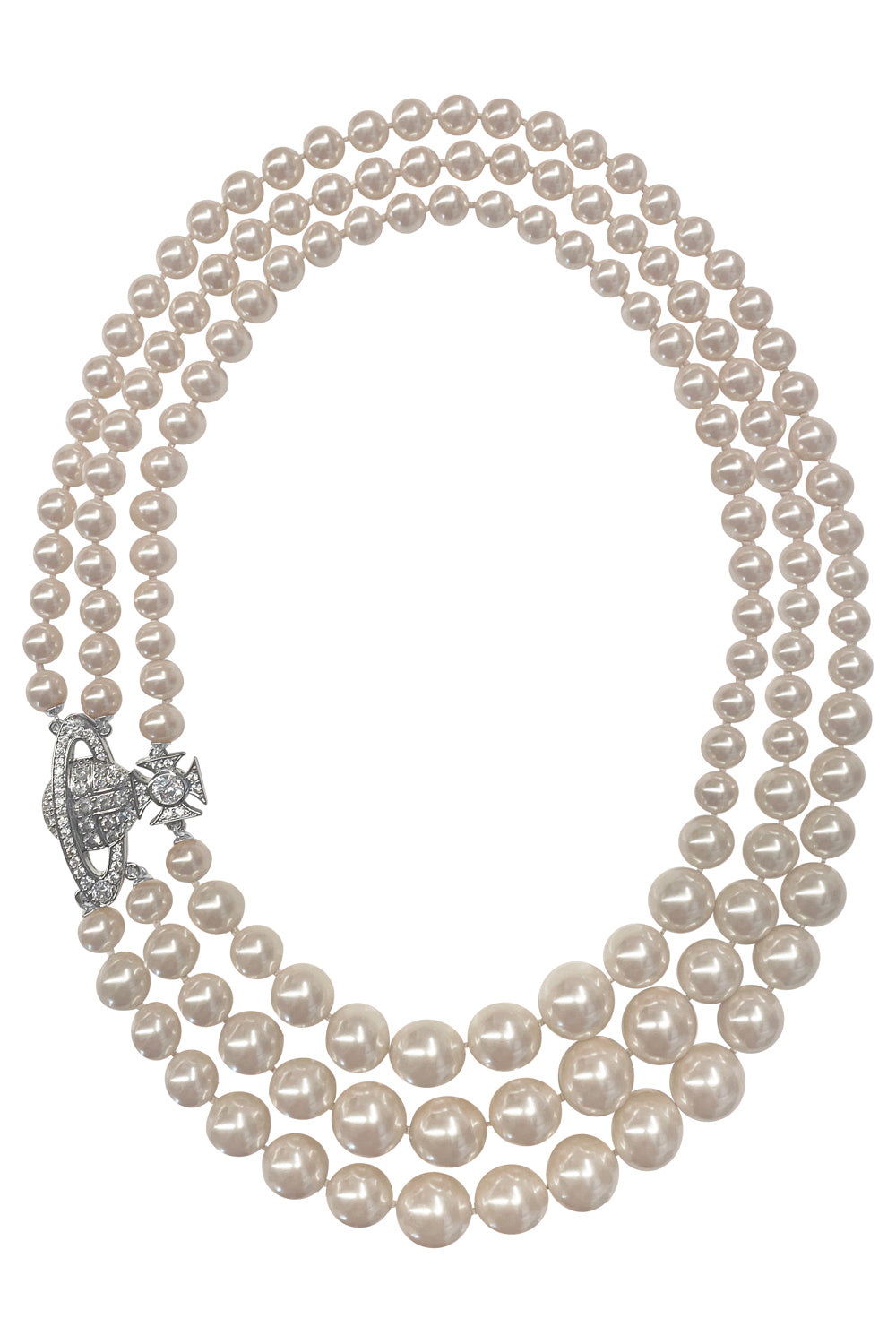 Graziella Three Row Pearl Necklace | White/Silver