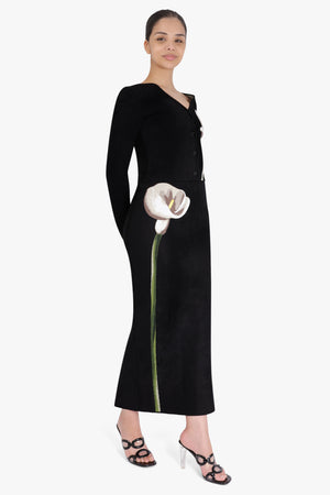 The Jacquemus Le Chiquito Long Leather Bag in Black is crafted from calf leather, featuring a round top handle, a detachable and adjustable shoulder strap, a fold over top with magnetic closure and a main internal compartment and a gold-tone logo plaque.