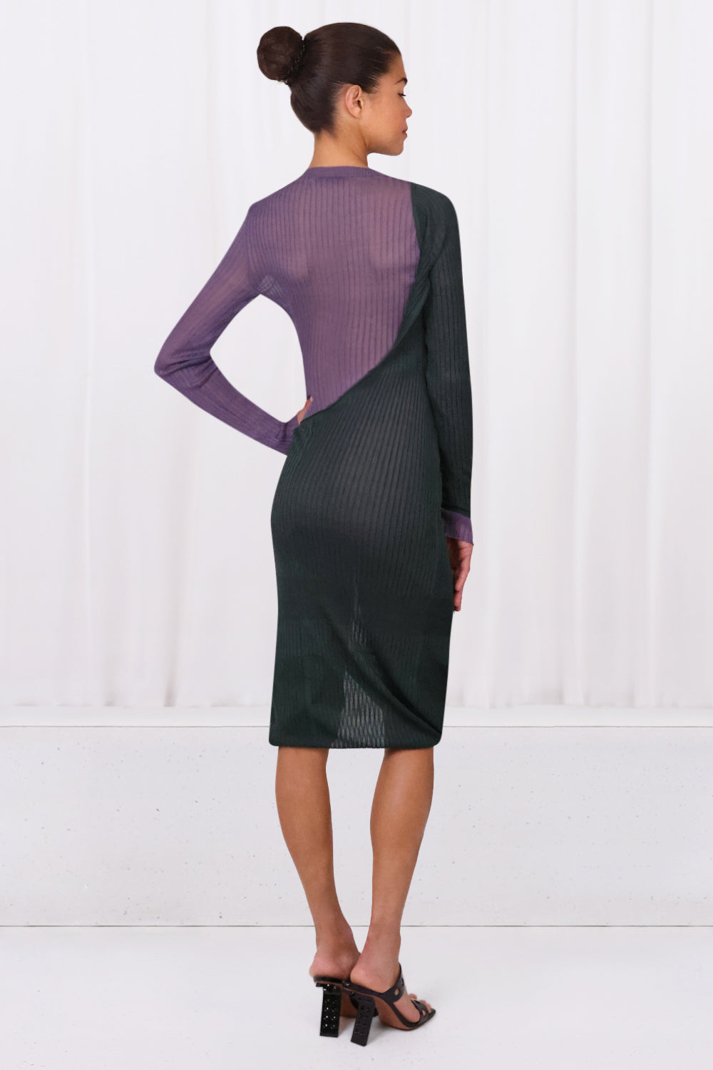 对比罗纹针织连衣裙L / S Green / Mausve