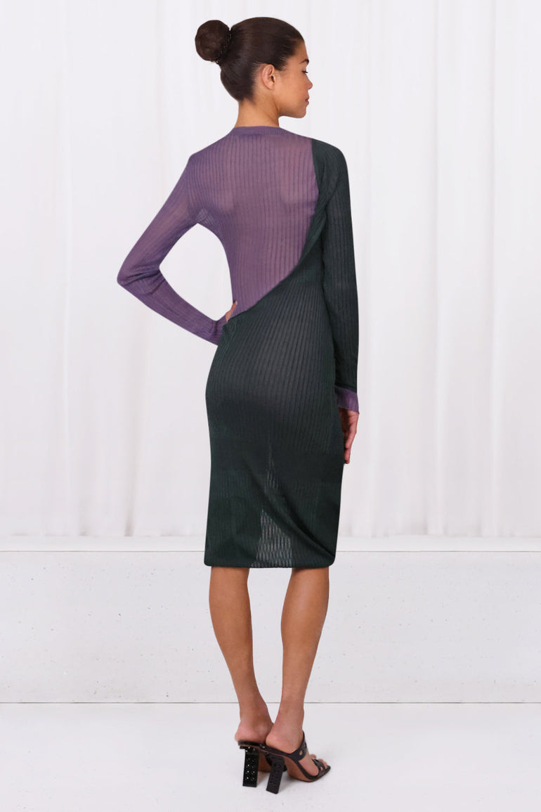 BOTTEGA VENETA RTW CONTRAST RIB KNIT DRESS | GREEN/MAUVE