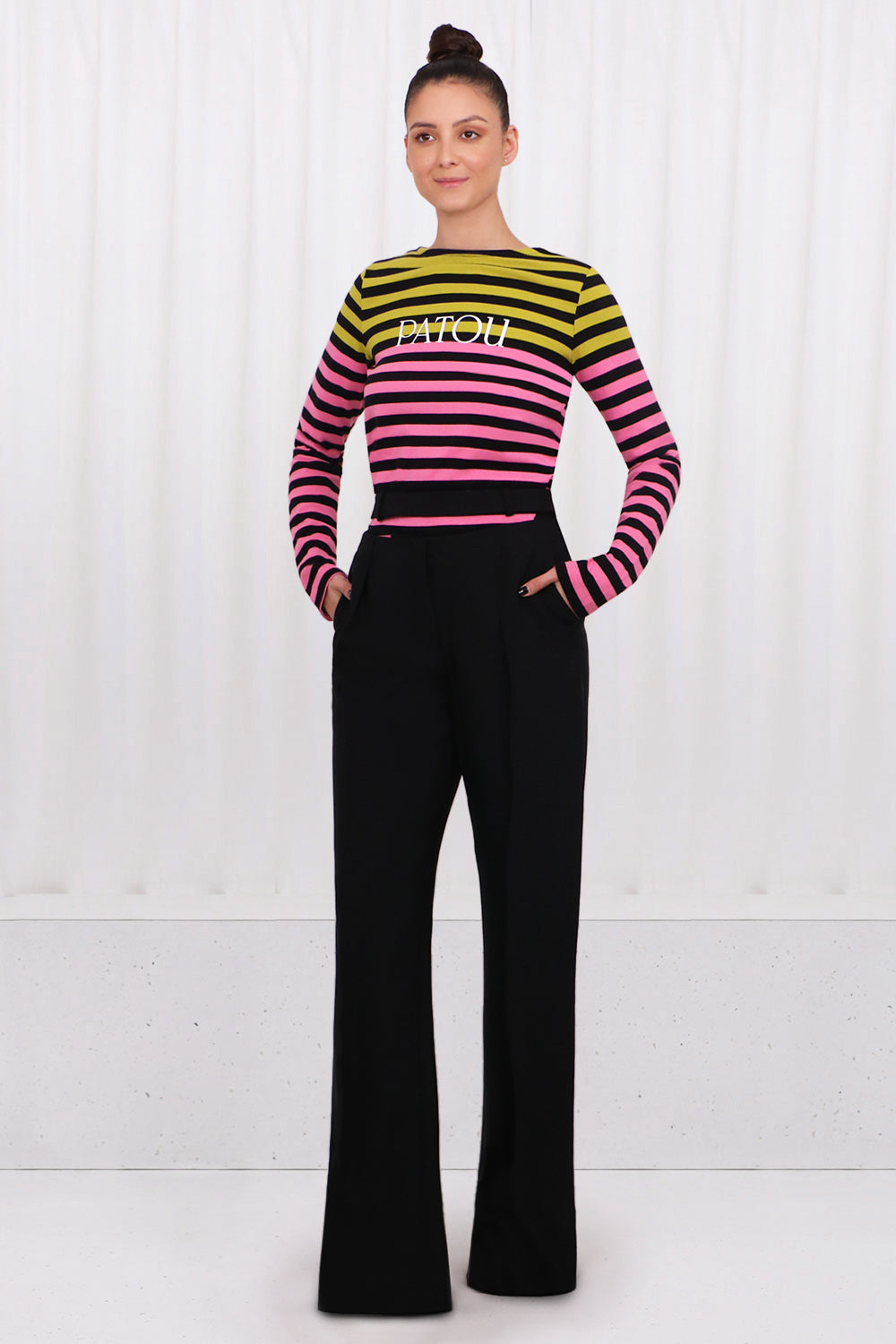 Patou’s iconic tailored trousers are a cornerstone of the brand’s identity—sharply cut, high-waisted, and often finished with exaggerated pleats or subtle volume through the leg. These pieces offer the structure of traditional tailoring with a softer, more fluid silhouette that defines Patou’s signature style. Whether styled with a crisp blouse or a relaxed knit, the trousers bring versatility and understated elegance to any look.
