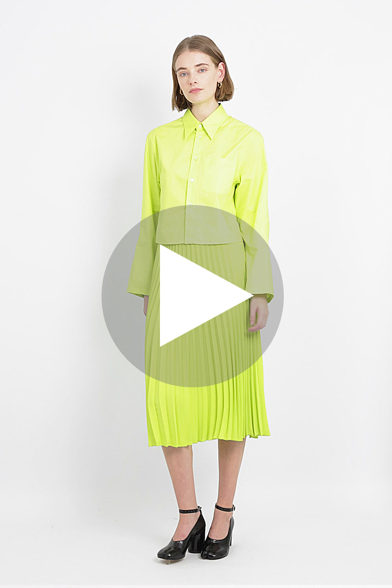 This Poplin Cotton shirt in neon green is made from high-quality cotton poplin, featuring a classic collar, front button fastening, long sleeves, and a chest patch pocket. The straight hem provides a modern, cropped look.
