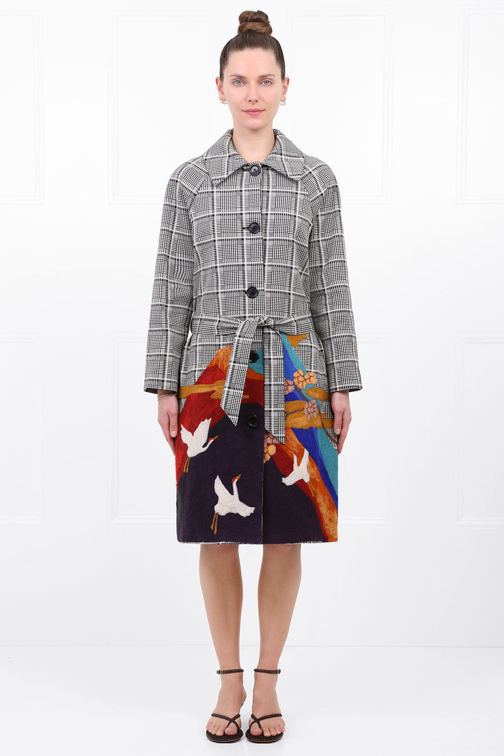 Every new Stella Jean collection commences with building a bridge to women in another developing country, followed by a true collaboration combining Stella Jean's aesthetic with the artisans of the host nation. This promotes sustainable development and preservation of endangered cultural traditions, while also helping women build their own economic autonomy. This season’s collection is rich in colour and symbology that was acquired on a recent expedition into central Asia. The pleated graphic skirt featuring birds and flowers in a mountainous landscape is absolutely stunning. As is the embroidered shirt, crafted from a striped cotton fabrication with a magnificent felt embroidered design of long legged herons. This shirt features long sleeves with buttoned cuffs, and is designed for an oversized fit. For a truly incredible statement piece, choose the embroidered coat in a check fabrication with an awe-inspiring embroidered design of birds and flowers. For the latest new season collections, visit our boutique in Paddington, Sydney Australia or shop Stella Jean online for free next day delivery and returns.