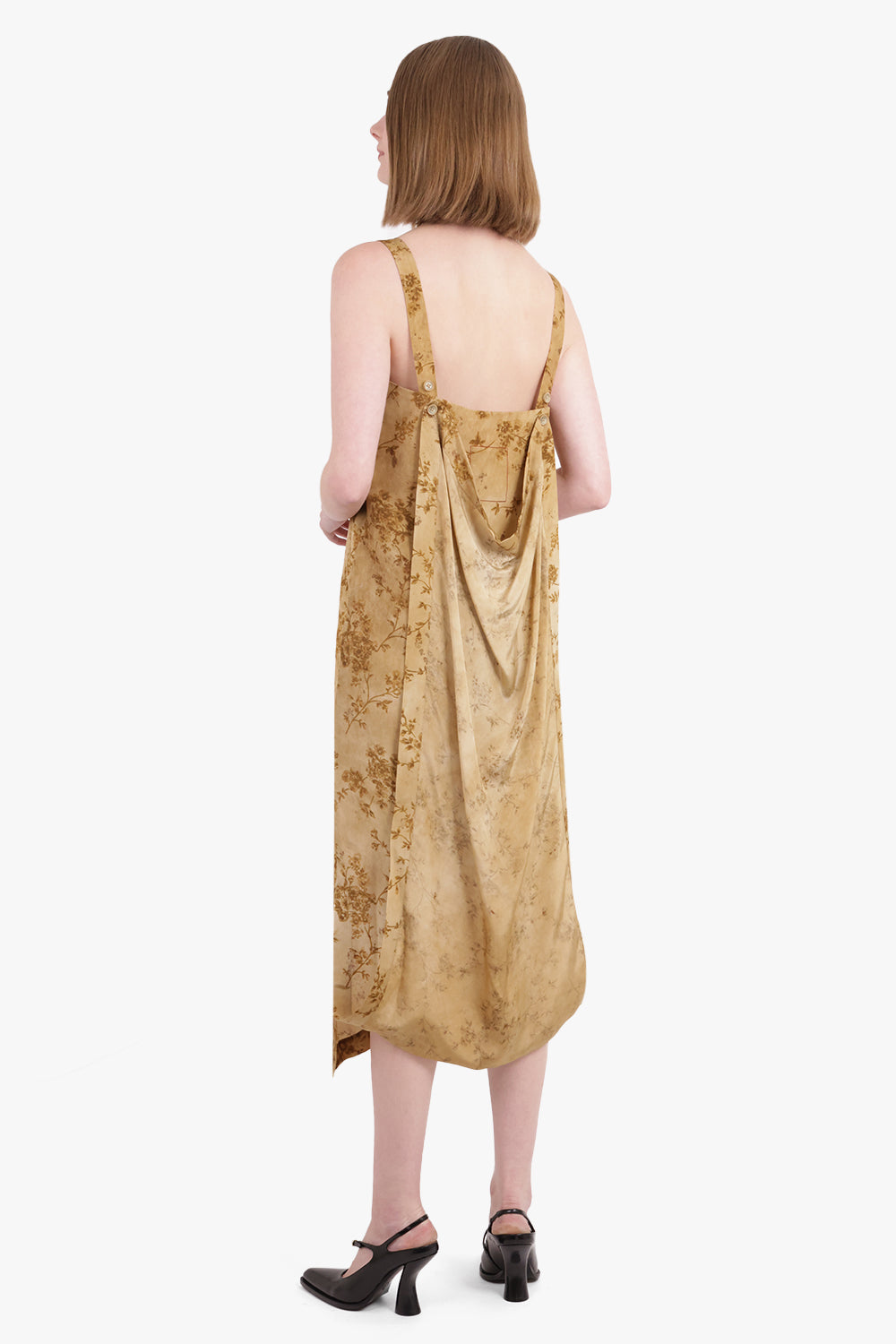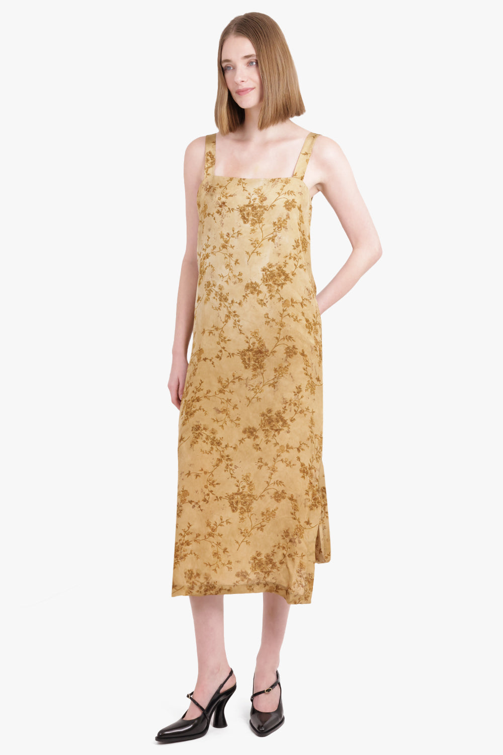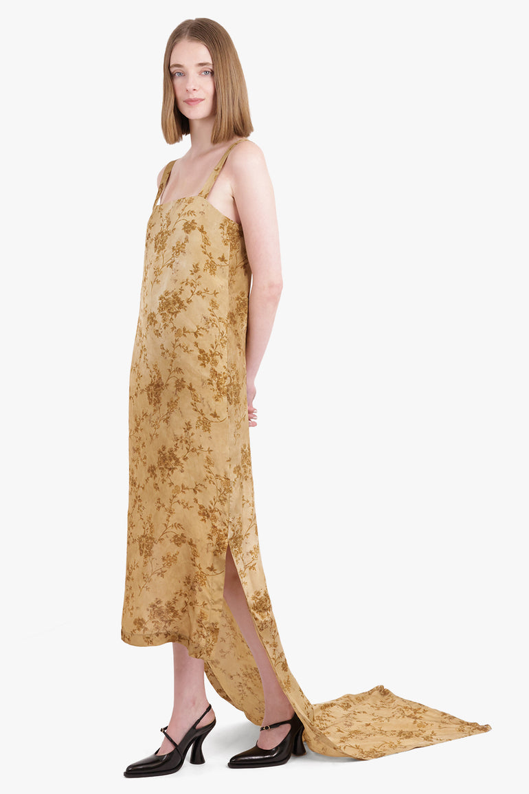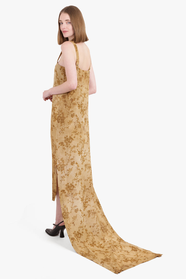 Above Square Neck Sleeveless Floral Print Midi Dress with Long Train | Yellow
