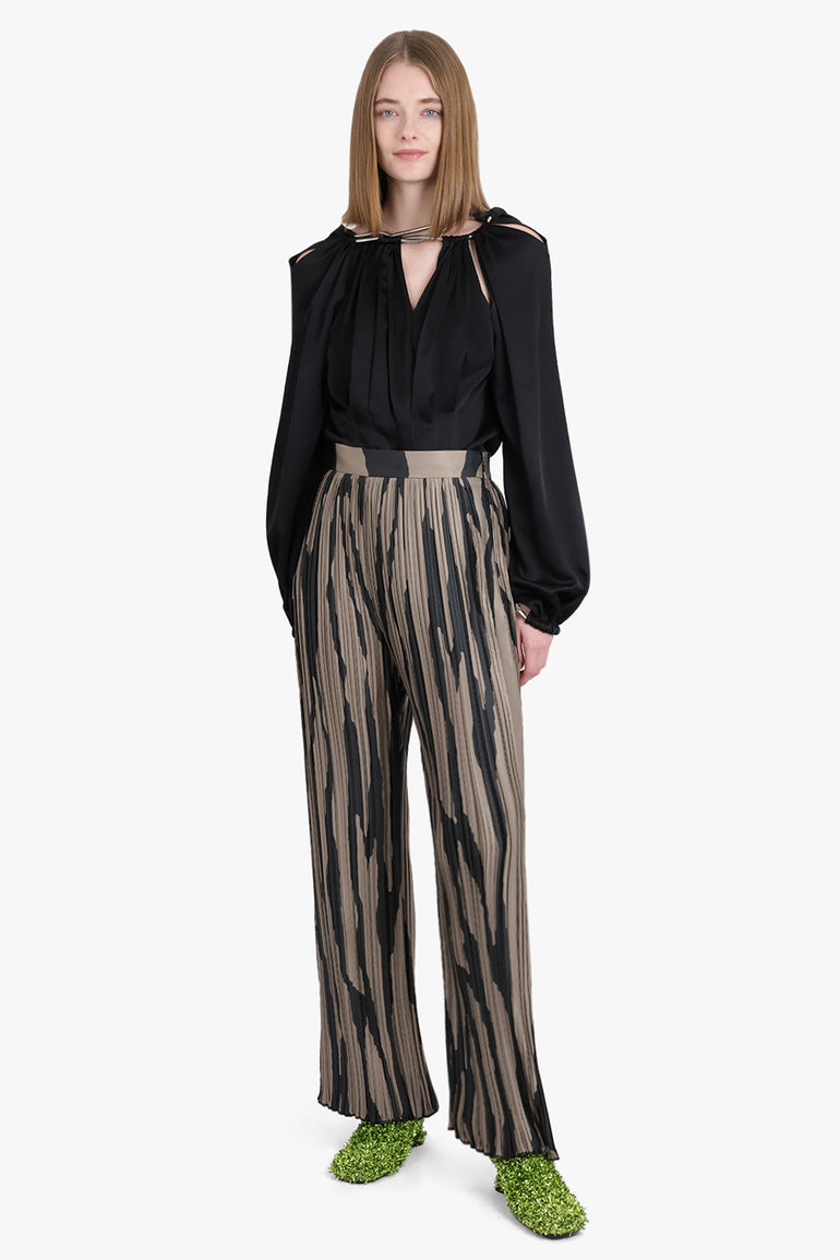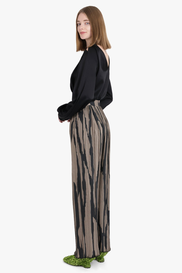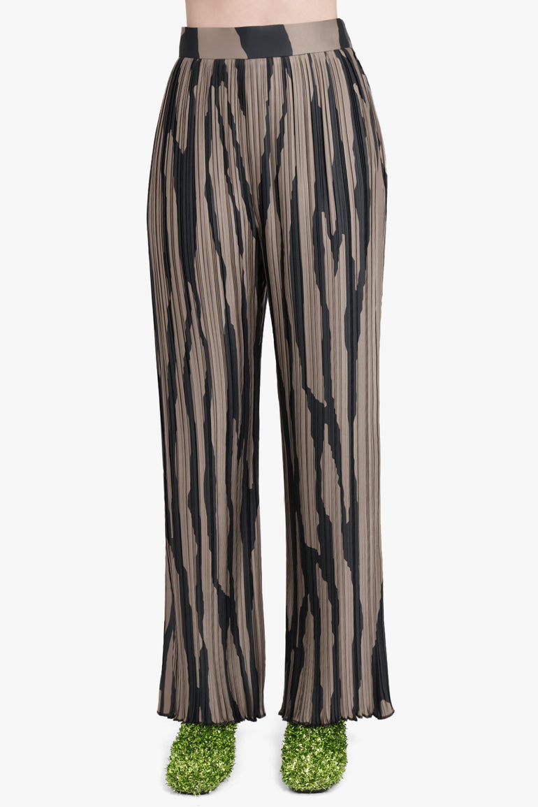 Abstract Stripe Pleat Wide Leg Pant | Grey/Black