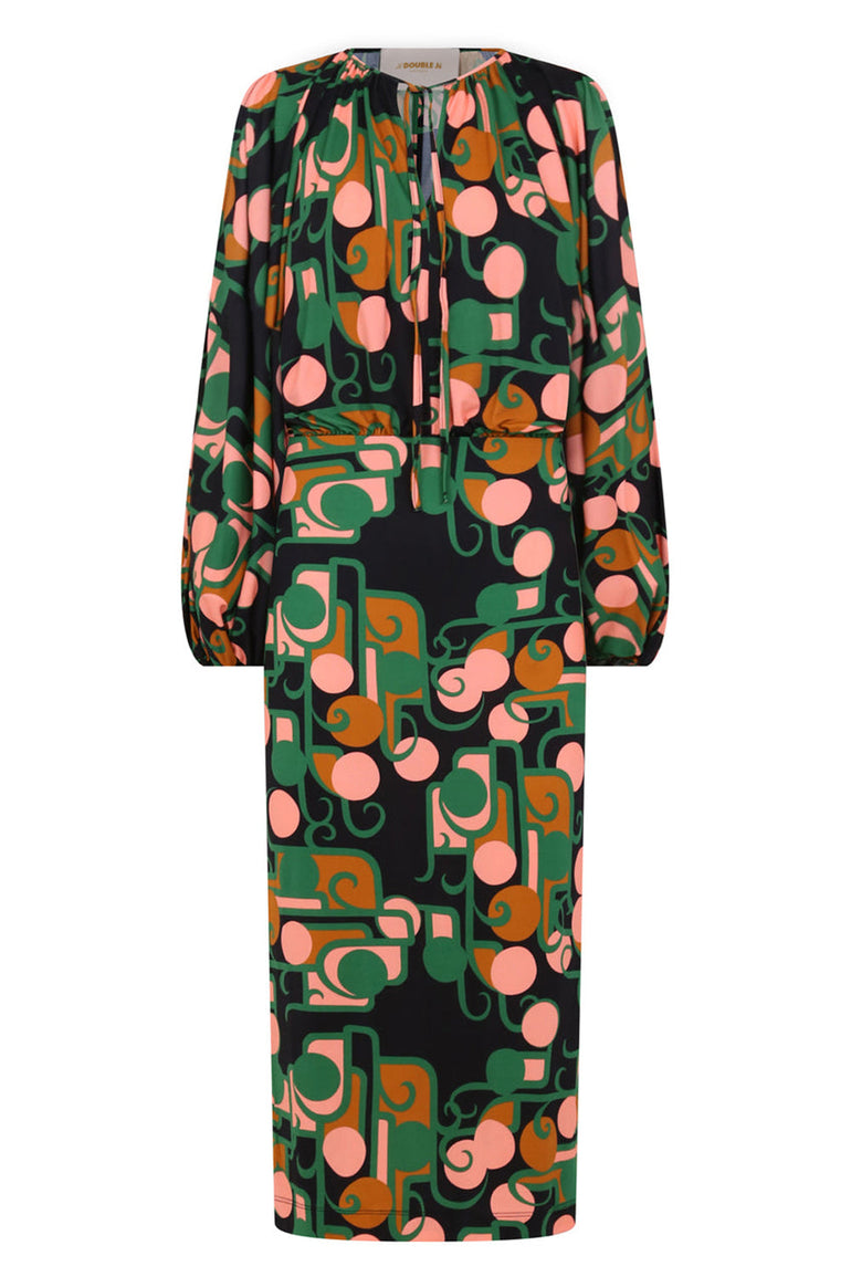 LA DOUBLE J RTW DECO PRINT APHRODITE DRESS 3/4SL GREEN