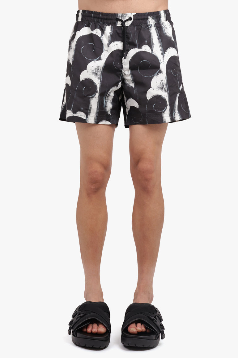 Asbtract Print Swim Short | Black/White