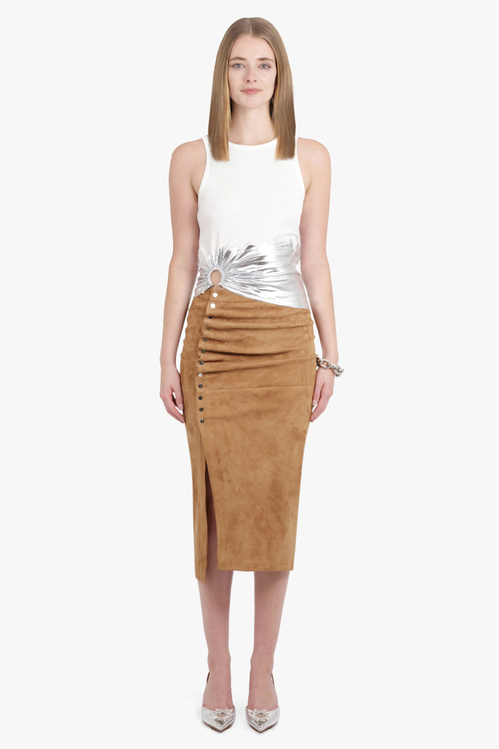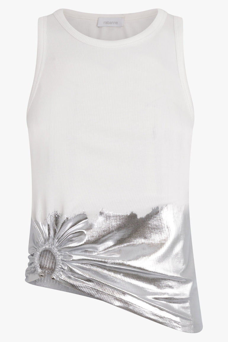 RABANNE RTW Asymmetric Tank Top With Foil Detail | White/Silver