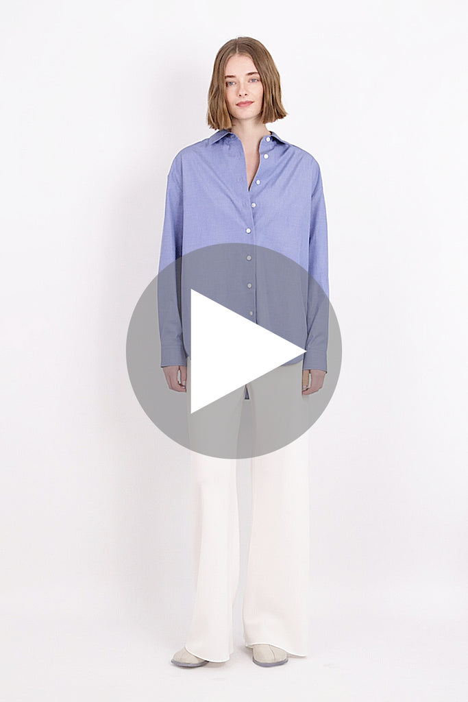Relaxed fit button-up shirt in yarn-dyed cotton poplin with exposed front placket and mother-of-pearl buttons.