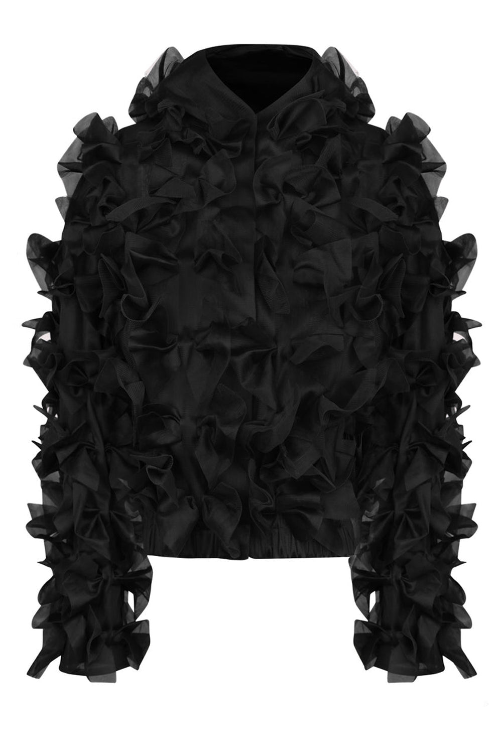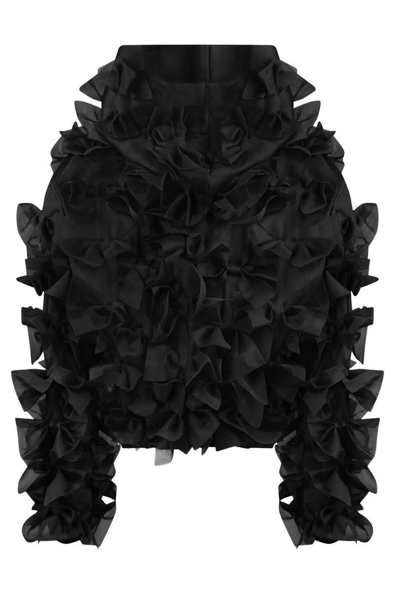 The Paskal Bow Appliqued Hooded Jacket in Black is fabricated from Tulle and features an oversized fit with bow detailing.