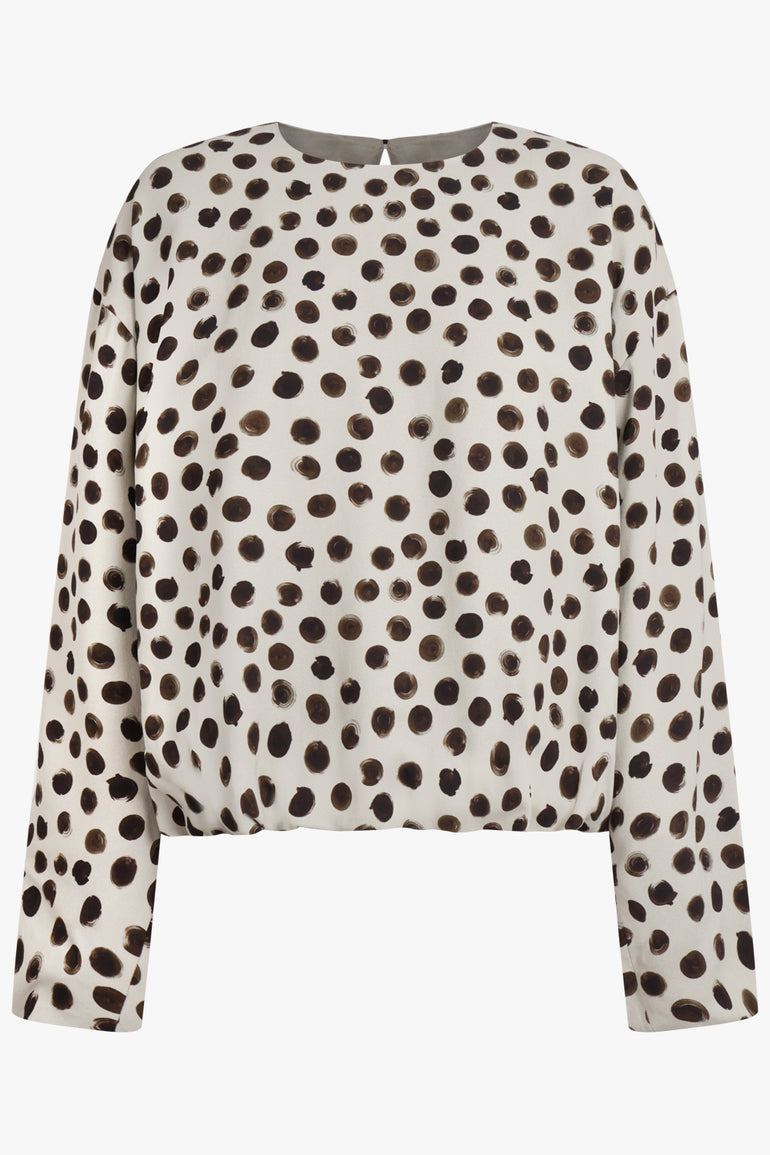 Capo Polka Dot Print L/S Top | Ecru/Brown