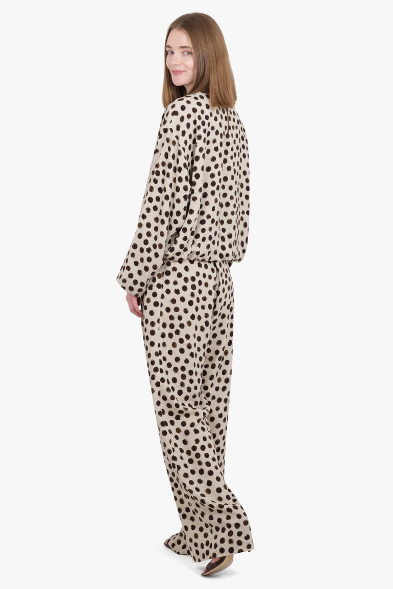 DRIES VAN NOTEN RTW Capo Polka Dot Print L/S Top | Ecru/Brown