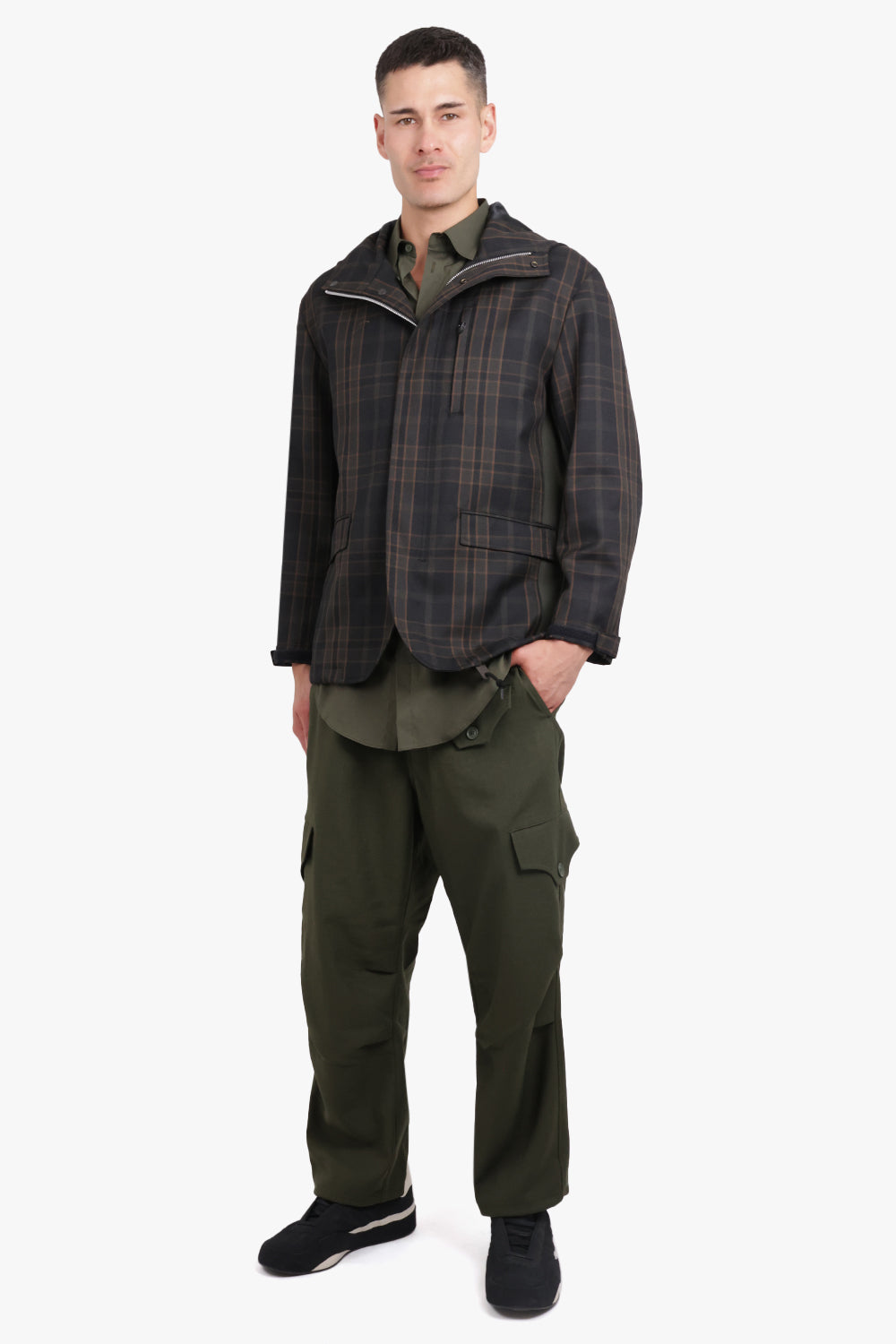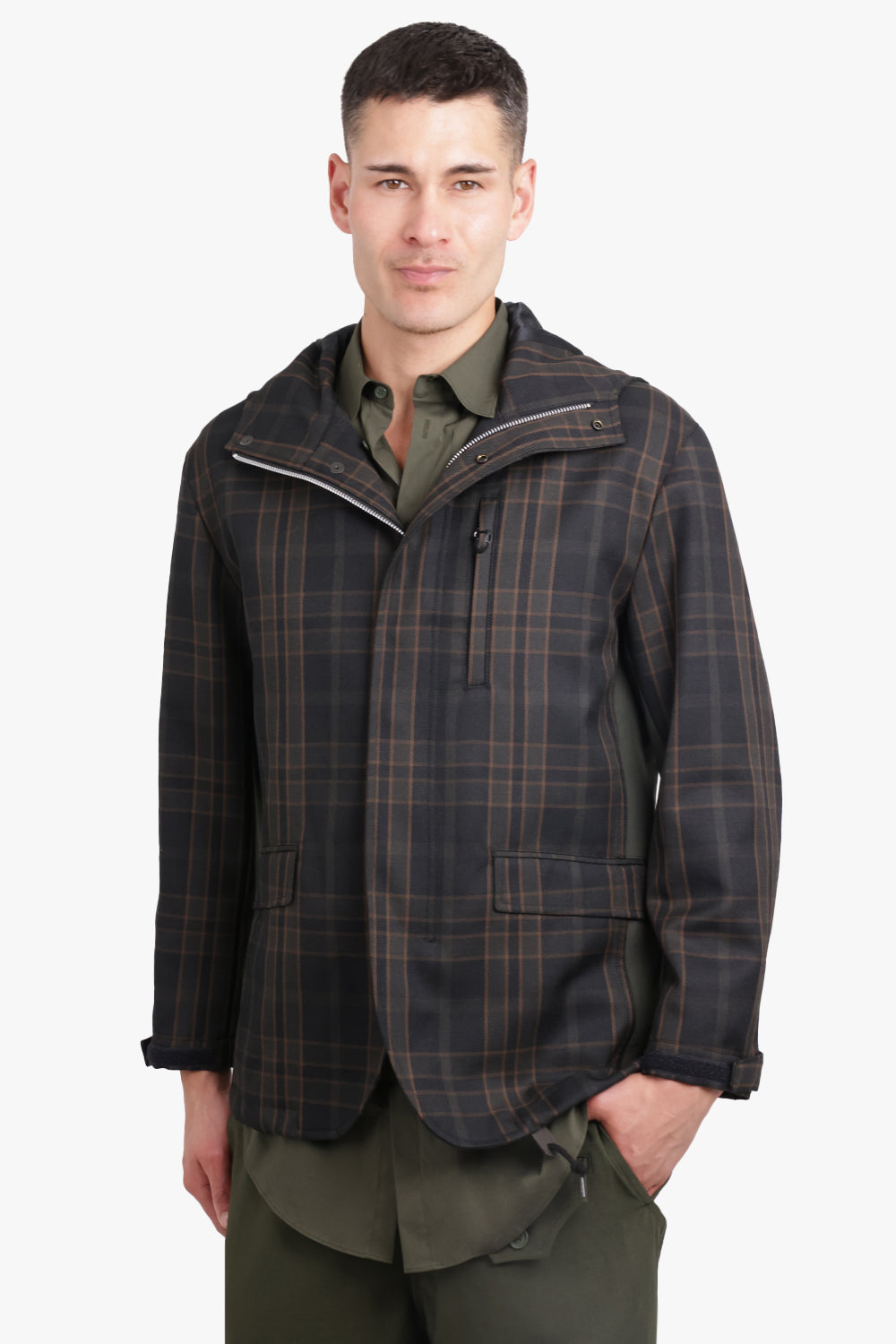 Check Print Parker Jacket With Pocket Detail | Green/Black